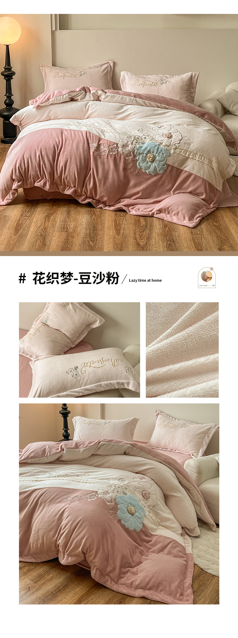 (总)新印象 2025新款全消光牛奶绒绣花活性印染四件套花织梦,花织梦-豆沙粉,花织梦-米柚橙,花织梦-清新蓝