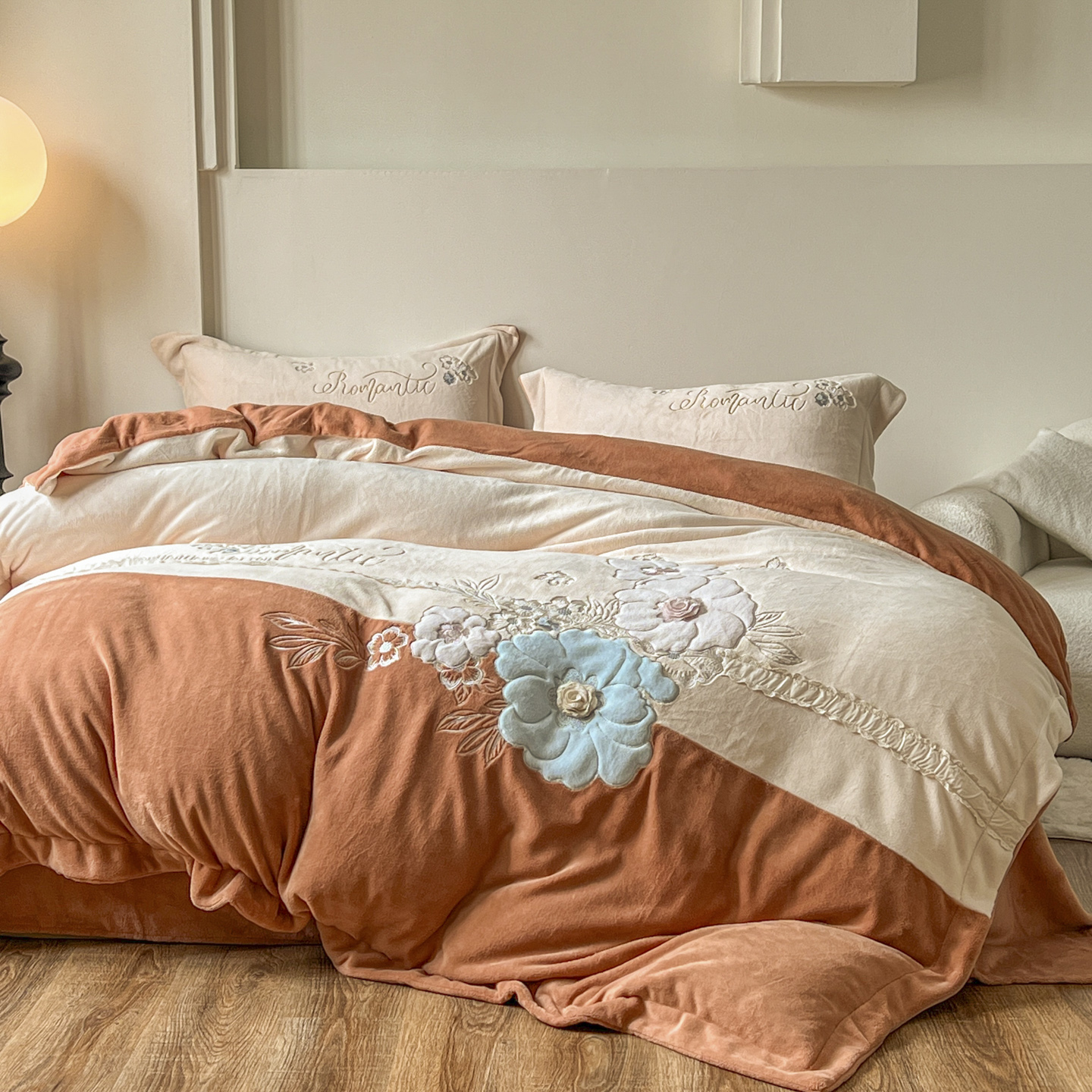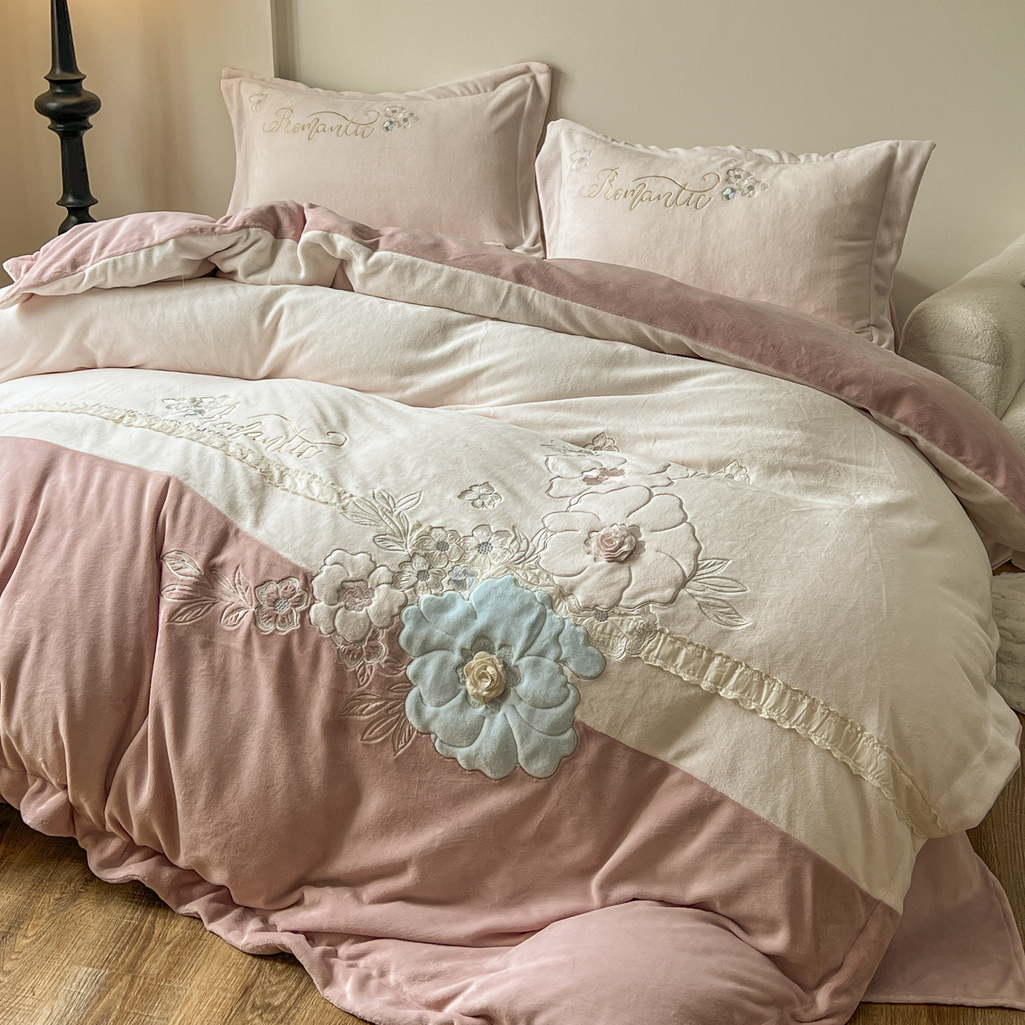 (总)新印象 2025新款全消光牛奶绒绣花活性印染四件套花织梦,花织梦-豆沙粉,花织梦-米柚橙,花织梦-清新蓝