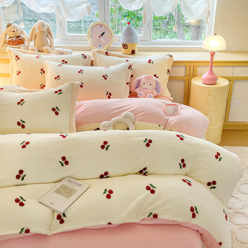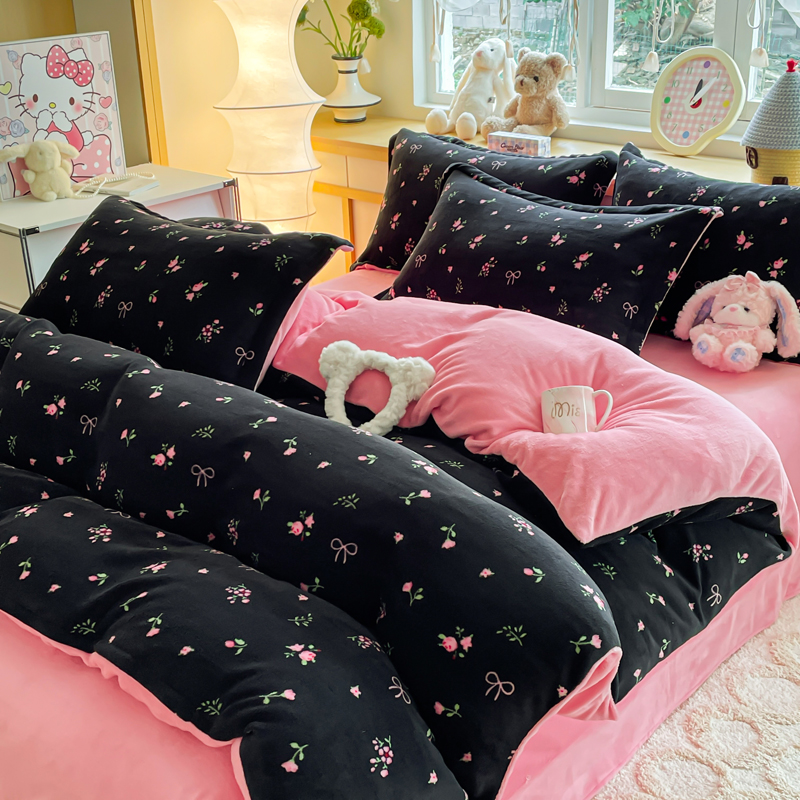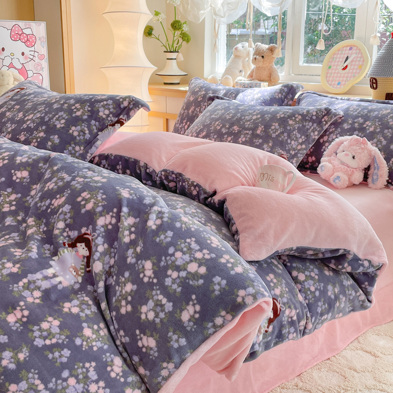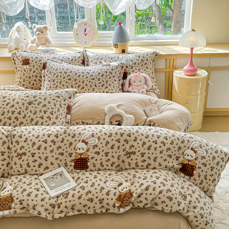 弗苓家纺 2025新款加厚保暖双面牛奶绒四件套 花妖- 白