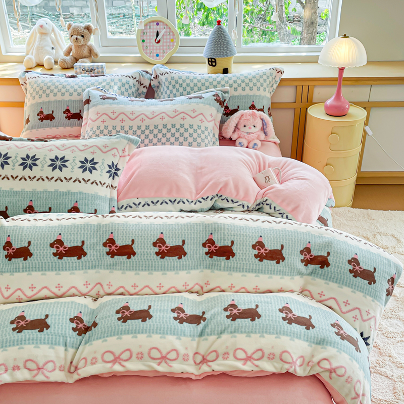 (总)弗苓家纺 2026春季新款高克重加厚色织提花四件套,爱心灰,爱心咖,北欧风情,波尔紫,布偶熊,复古南瓜,红棕小兔,咖啡小熊,腊肠狗,玛奇朵,莓梦仙境,美式玫瑰,麋鹿,米菲兔,蔷薇,童心小木马,幸运小马,雪纳瑞,樱桃布蕾,月兔,云朵狗,云絮,芝樱,知野,组合图(仅供展示不可下单)