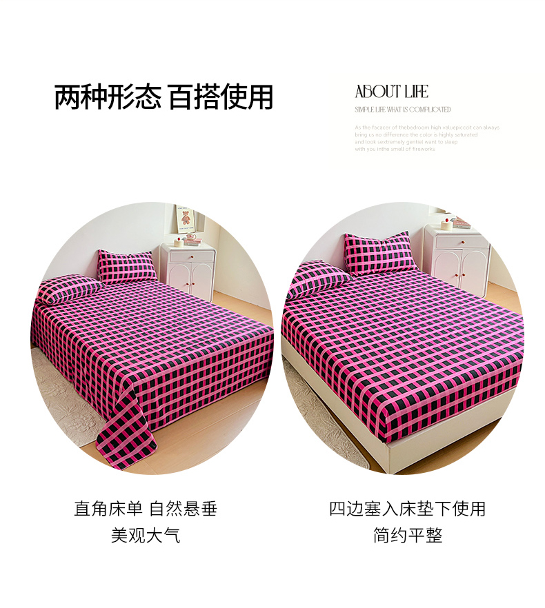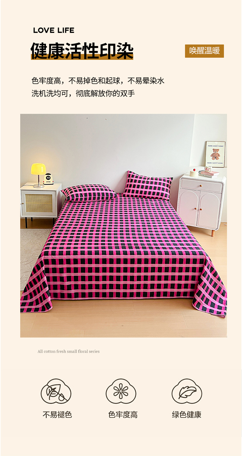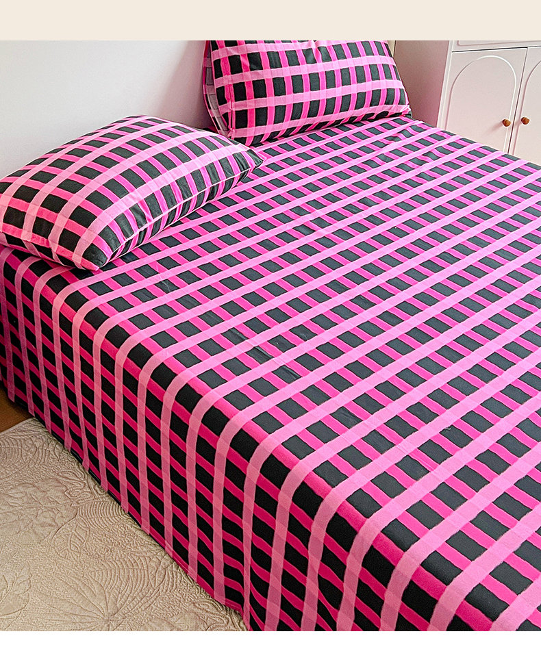 当前位置: 91家纺网 > 商品网购 > 床品套件 > 三件套 > 感遇 2025新款全棉磨毛A类床单床笠三件套 玫红格