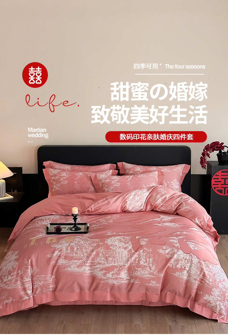 (总)置顶家纺 2025新款时禧婚庆亲肤数码印花四件套