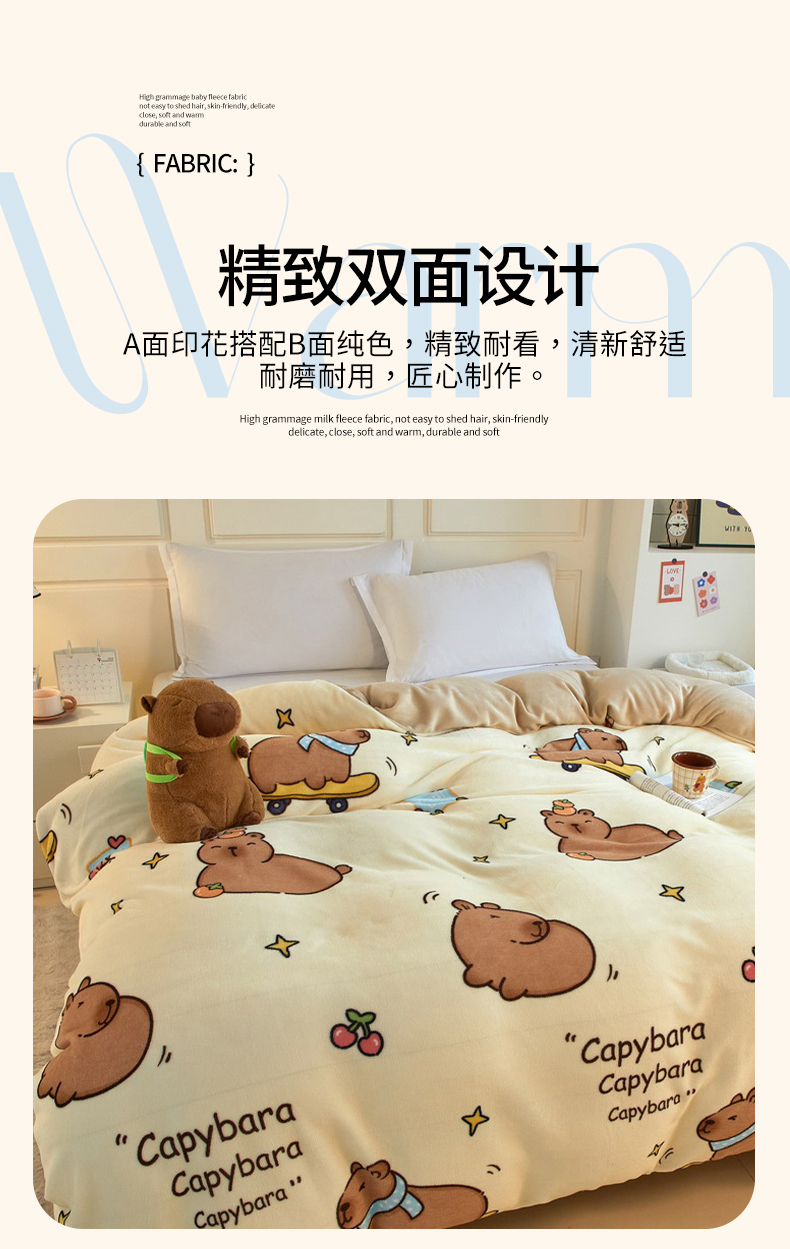 商品名称:(总)蘭菲家纺 2025新款卡皮巴拉牛奶绒单被套 被套单件