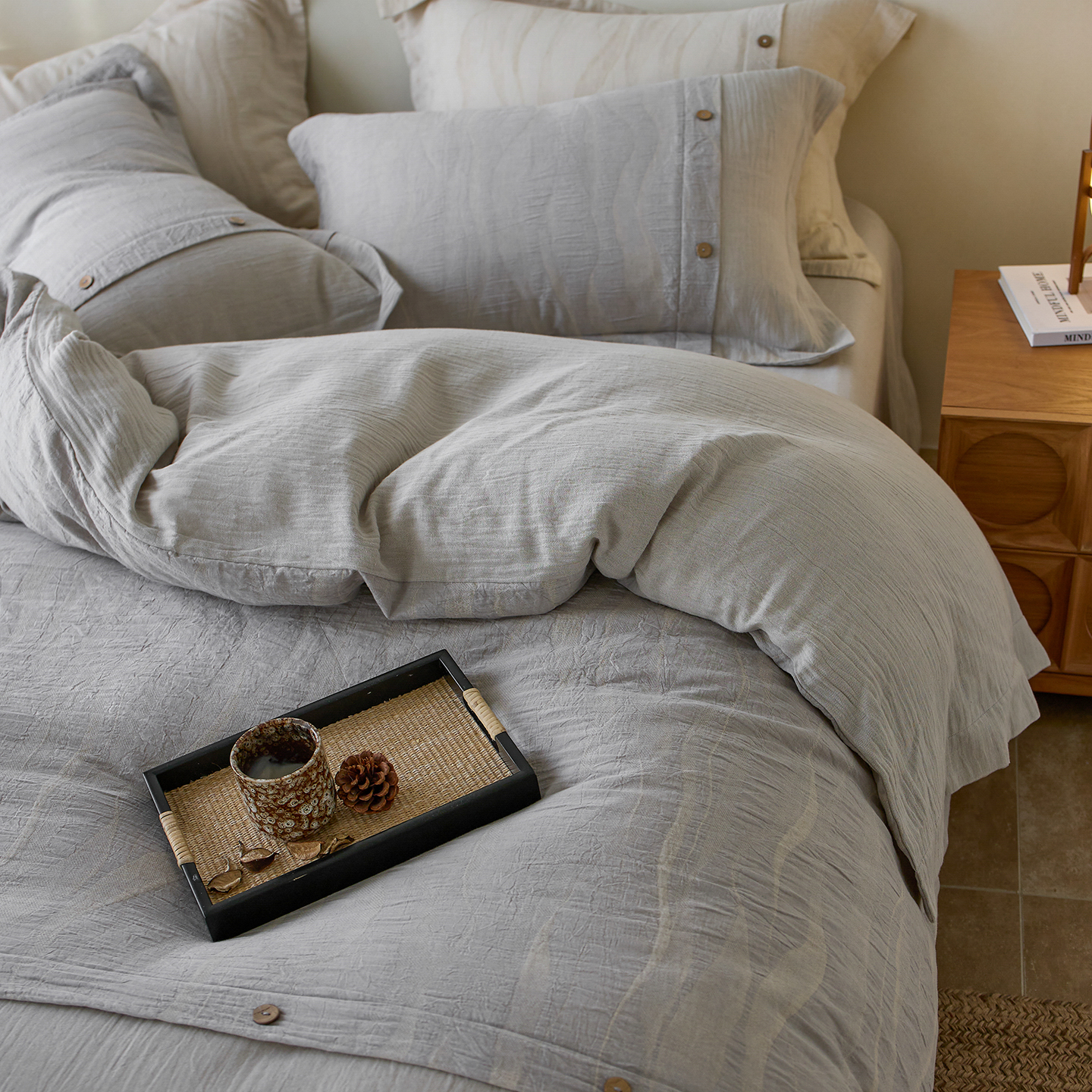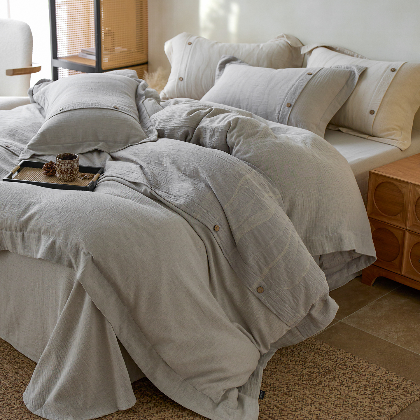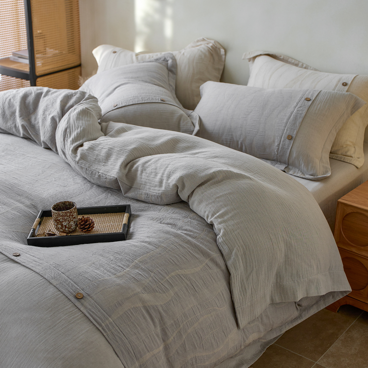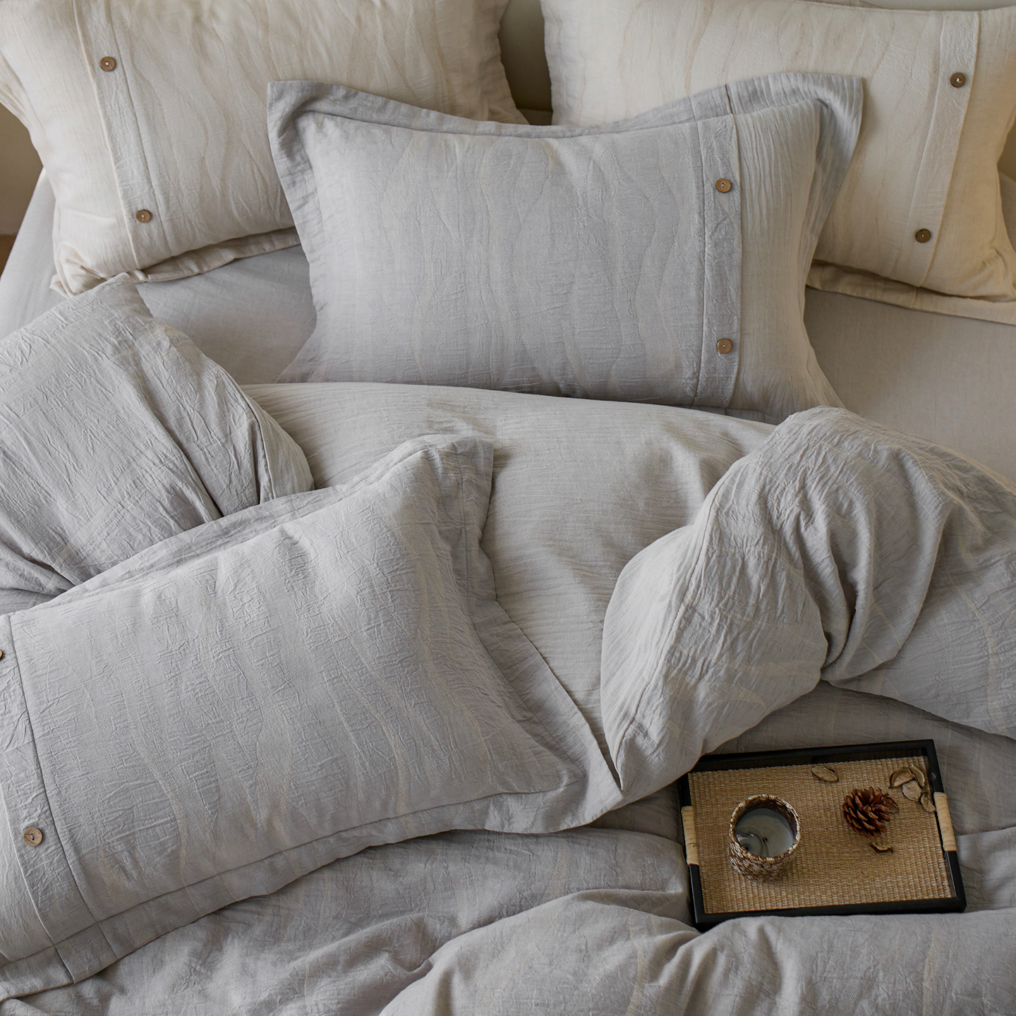 涞澳家纺 2025新款棉麻皱皱纱四件套 萨尔斯-蓝灰