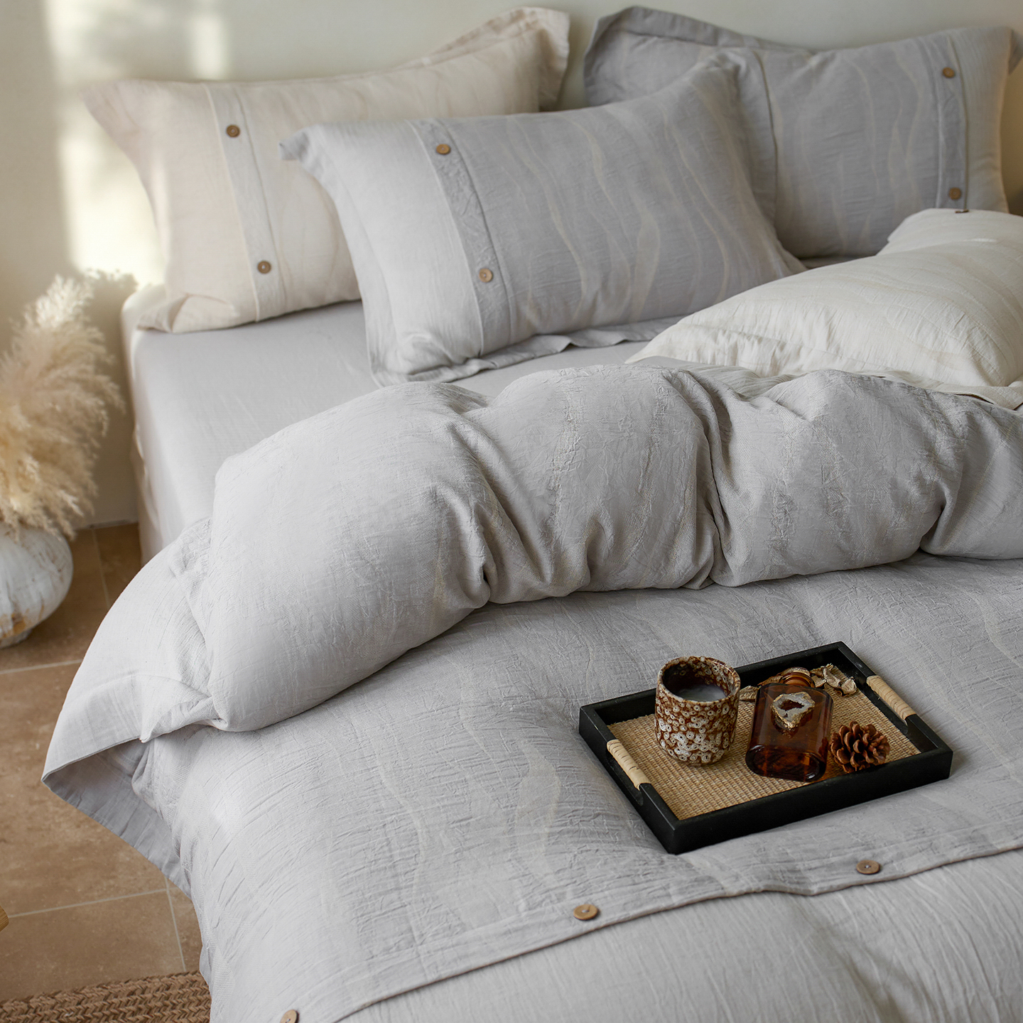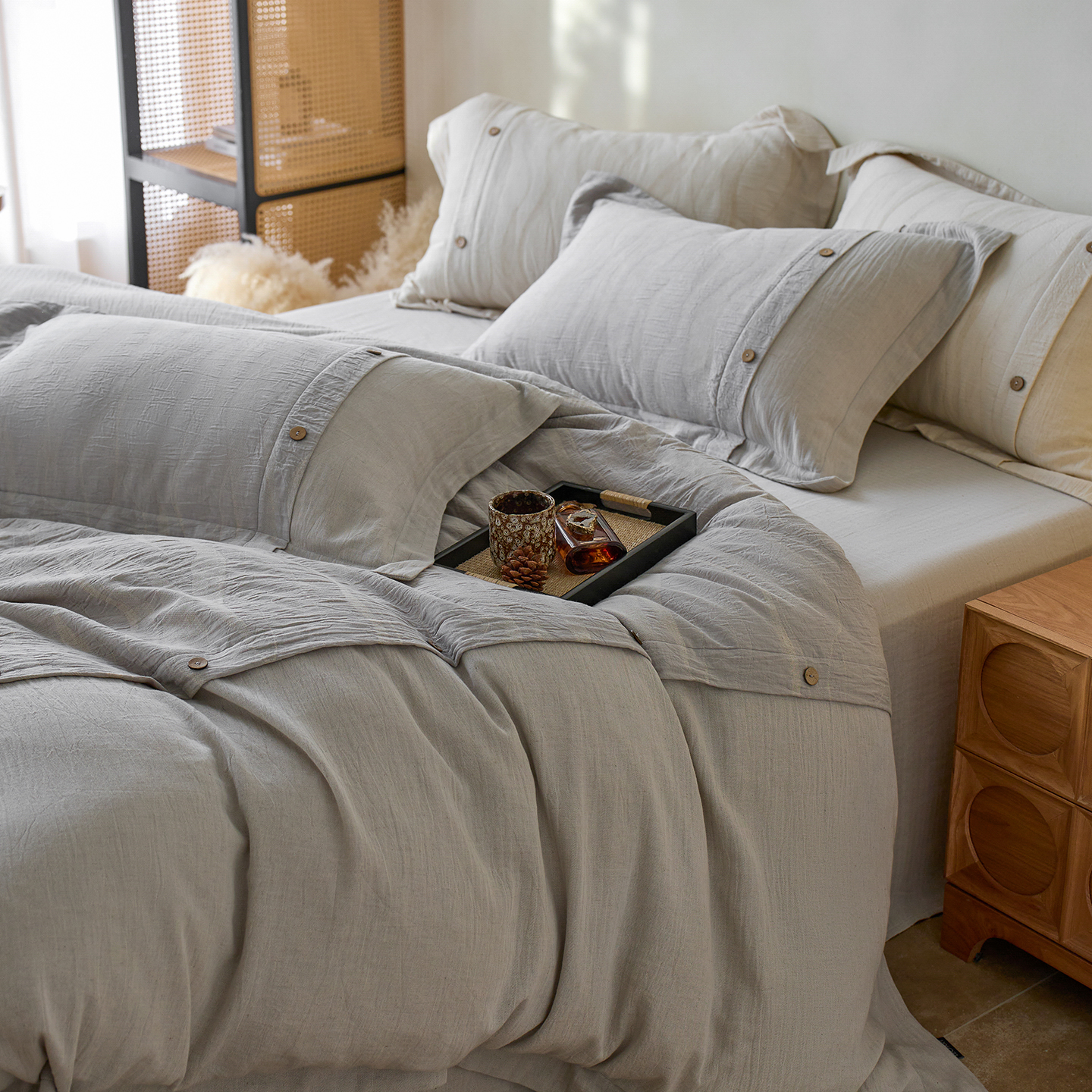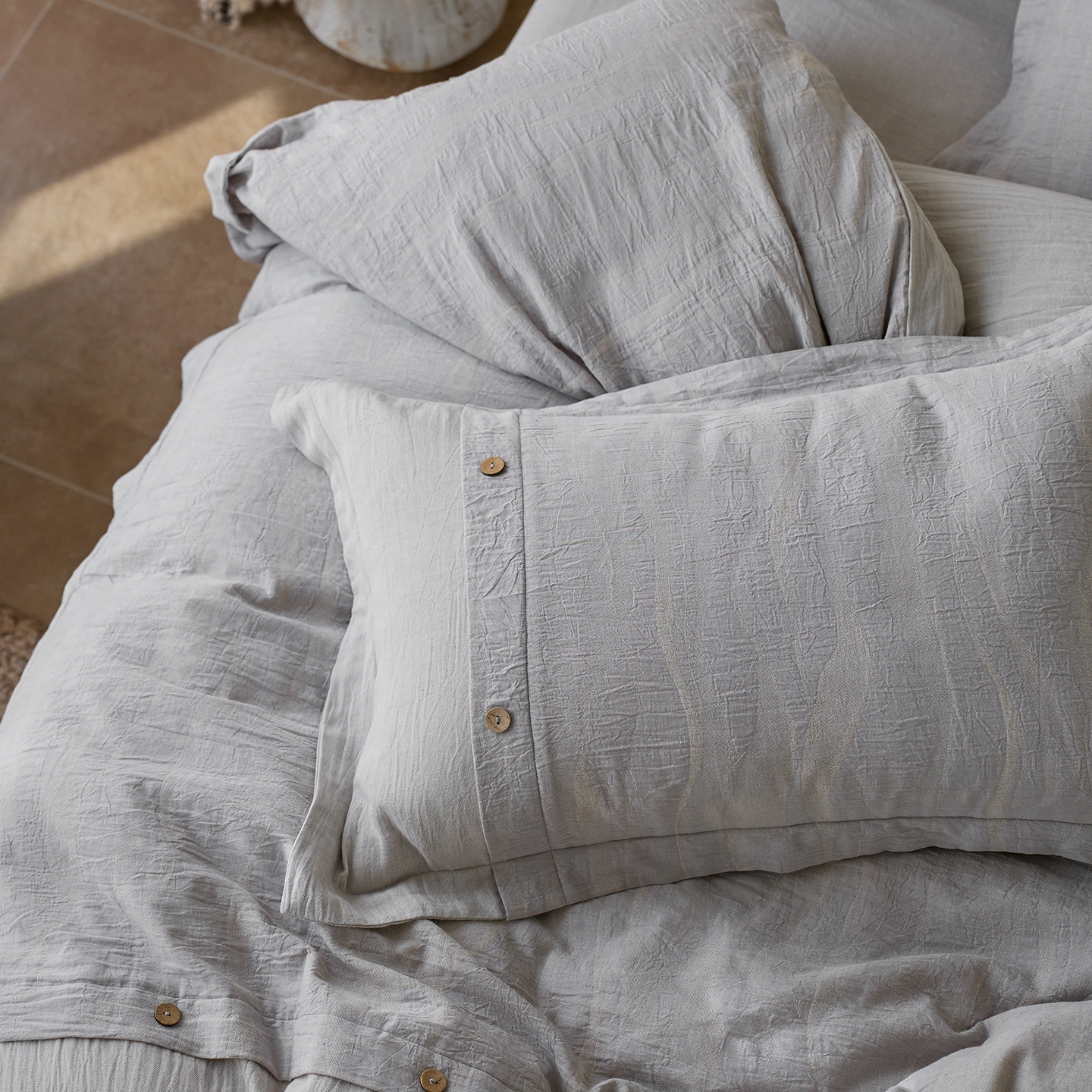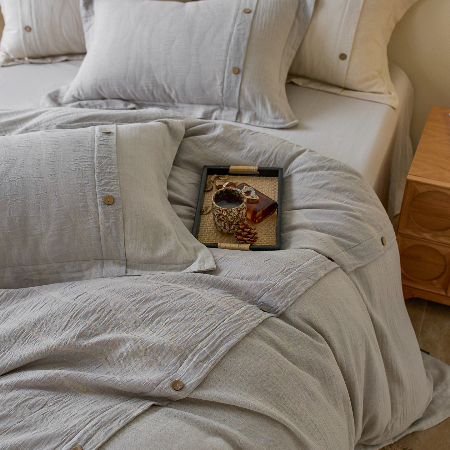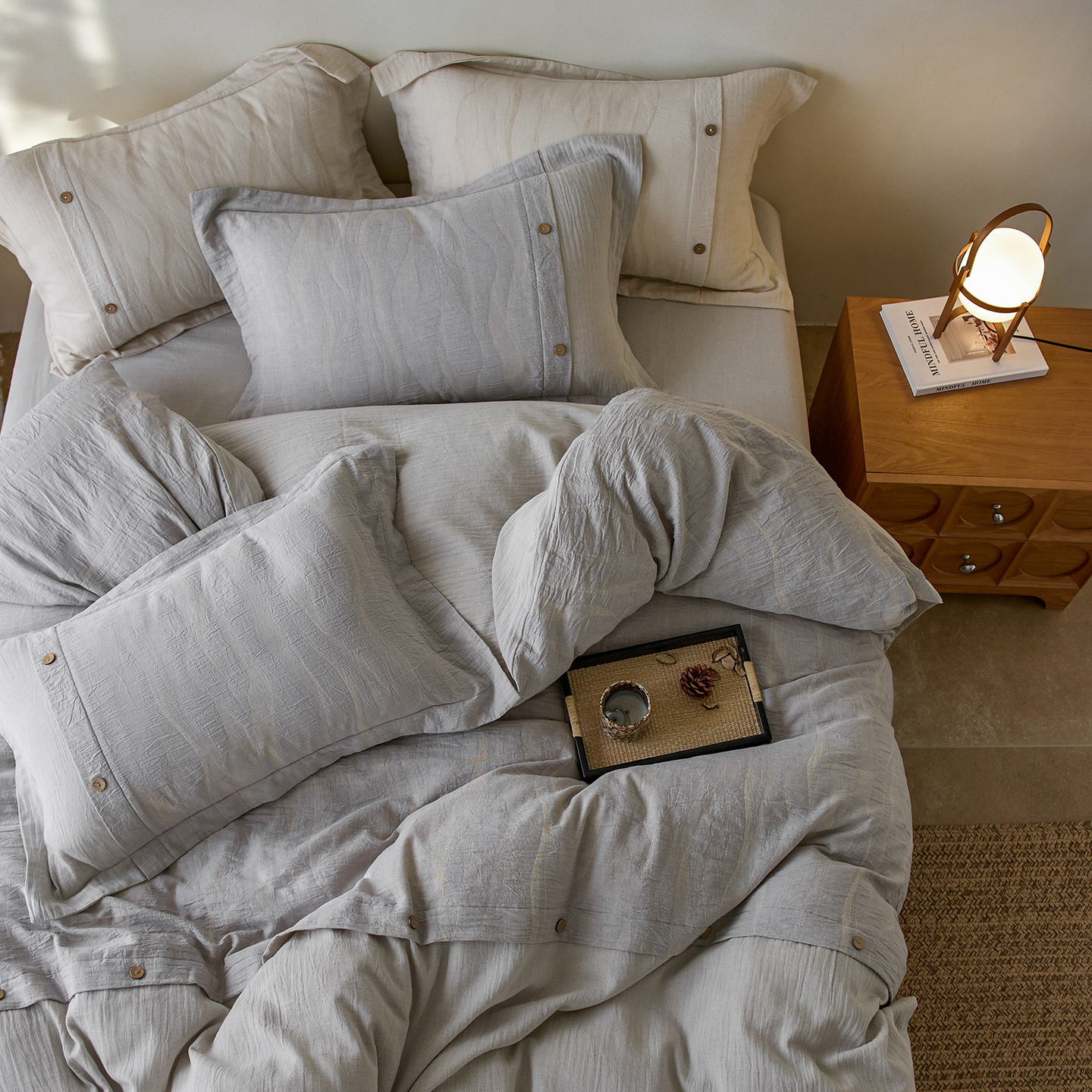 涞澳家纺 2025新款棉麻皱皱纱四件套 萨尔斯-蓝灰