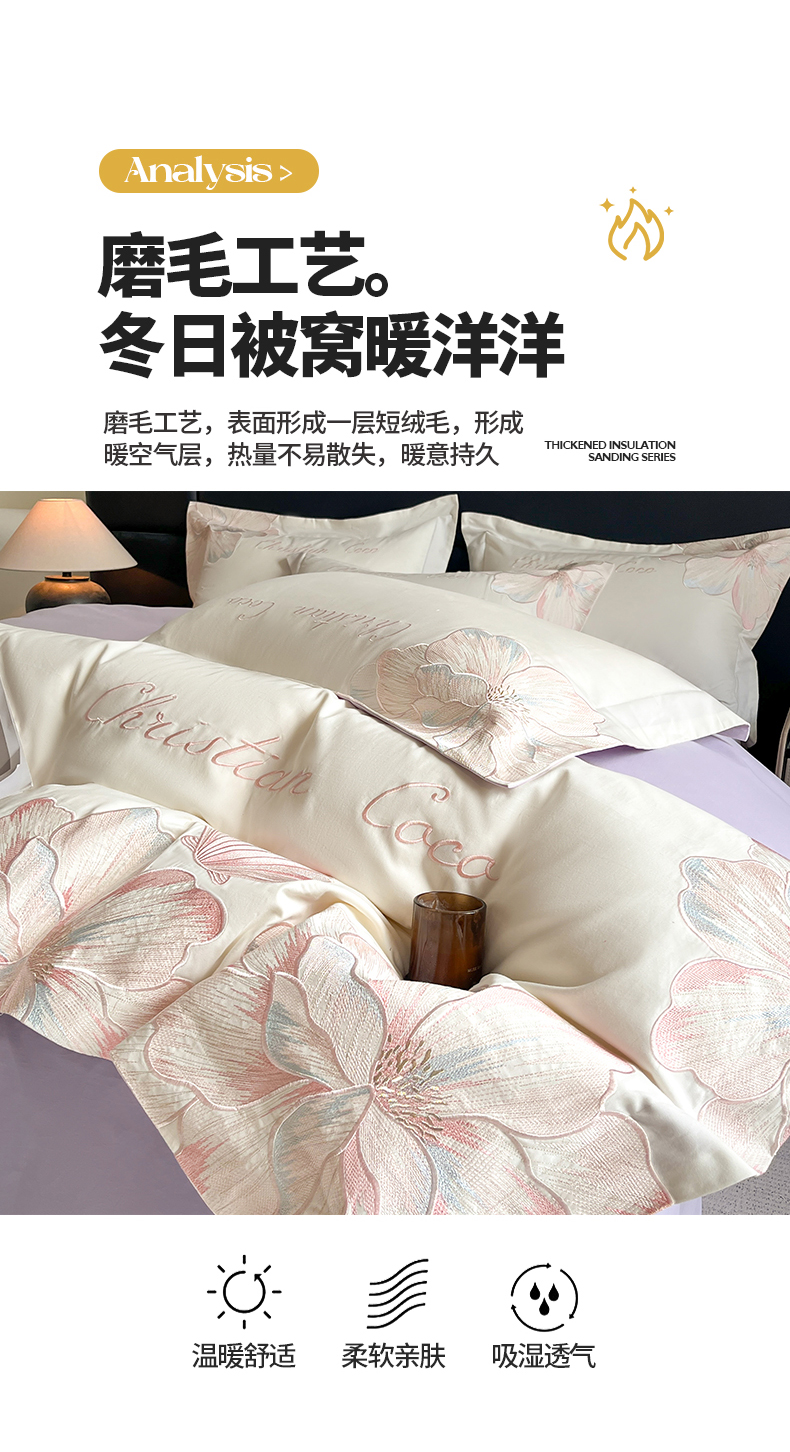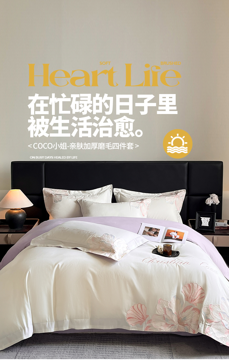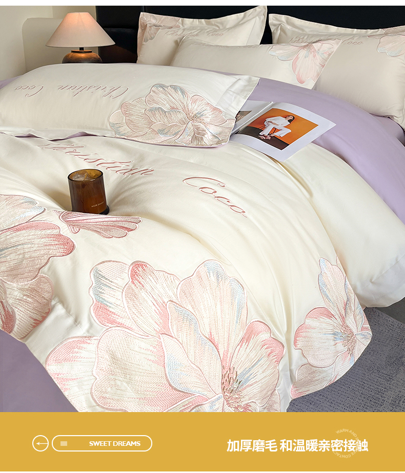 当前位置: 91家纺网 > 商品网购 > 床品套件 > 四件套 > 磨毛活性四件套 > 置顶家纺 2025新款COCO小姐加厚磨毛亲肤四件套 COCO小姐加厚磨毛-奶白+香芋紫