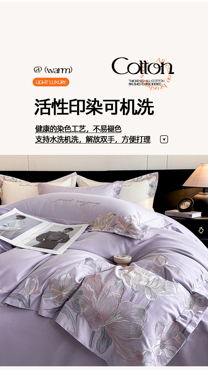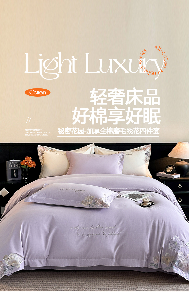 当前位置: 91家纺网 > 商品网购 > 床品套件 > 四件套 > 磨毛活性四件套 > 置顶家纺 2025秋冬新款加厚全棉磨毛四件套-秘密花园 秘密花园-香芋紫