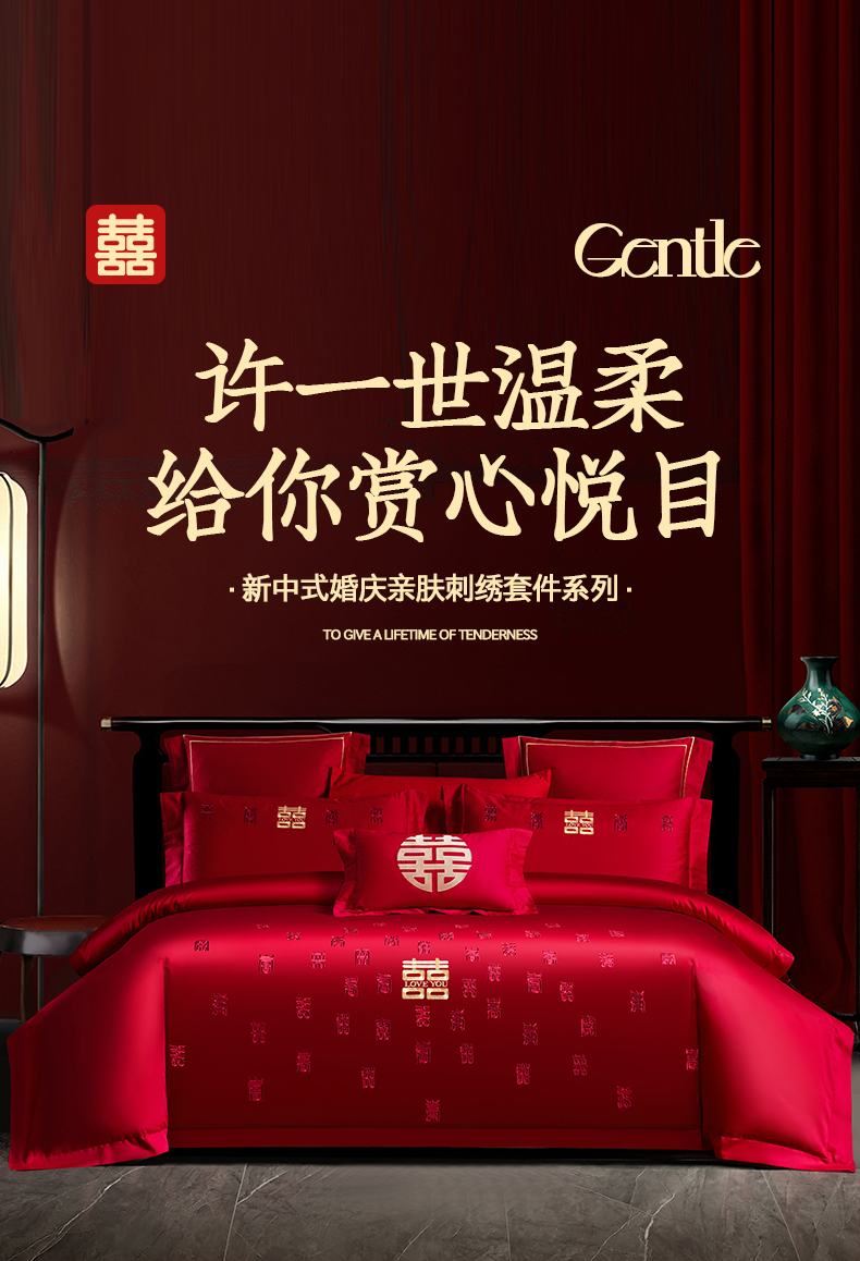 (总)置顶家纺 2025新款新中式婚庆亲肤刺绣四件套