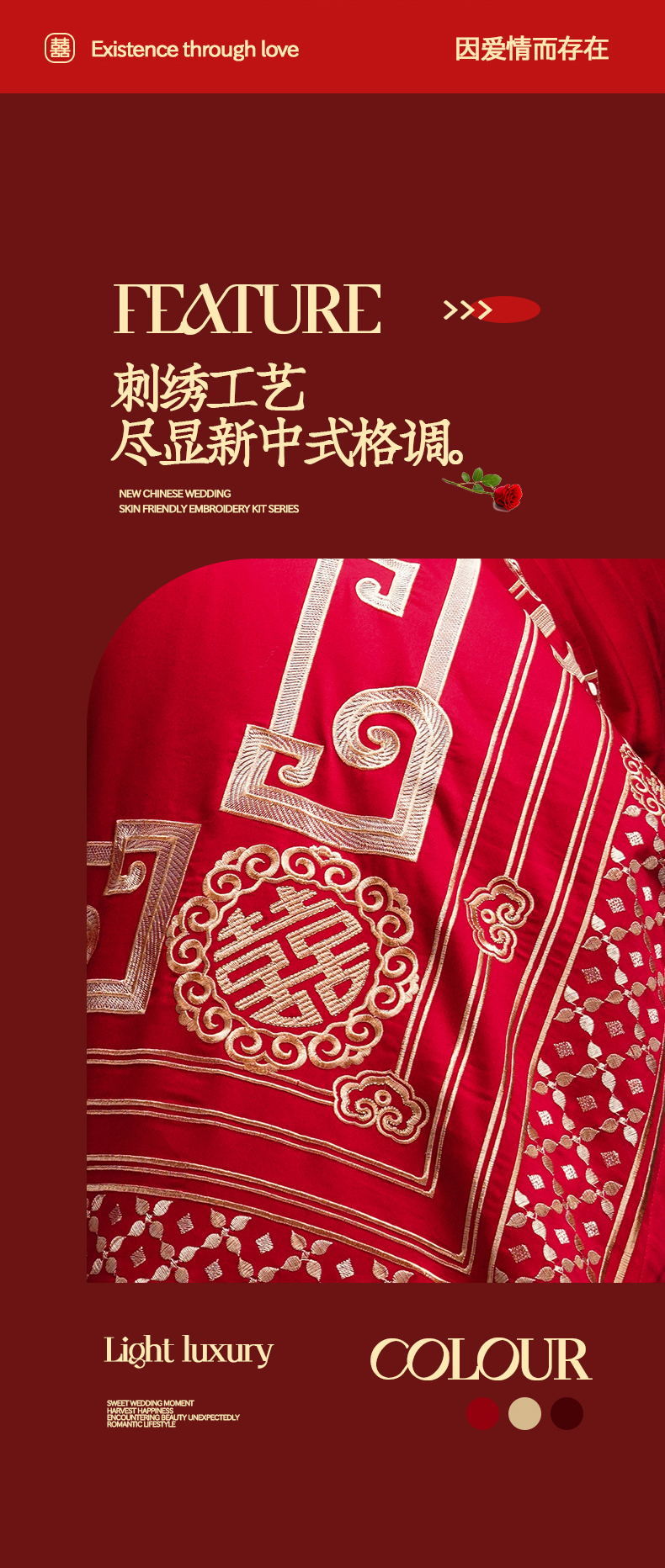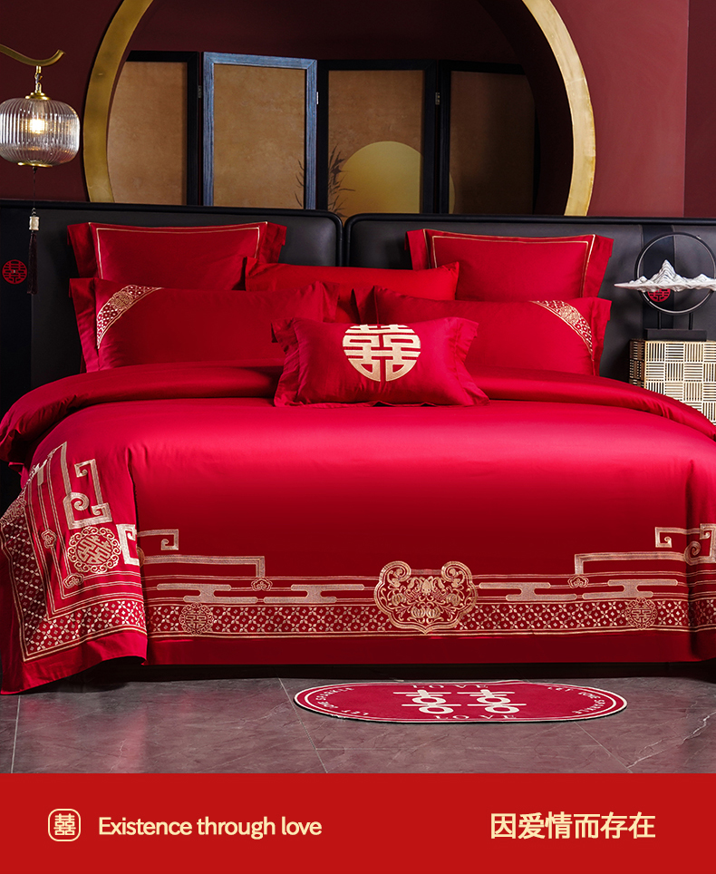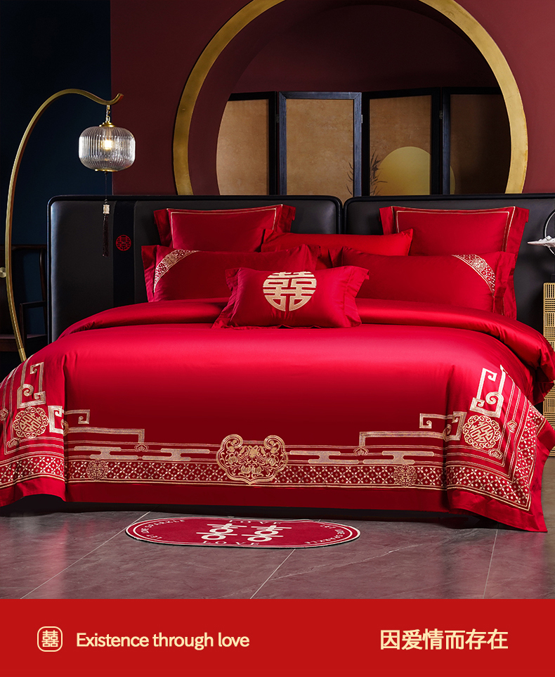 当前位置: 91家纺网 > 商品网购 > 床品套件 > 四件套 > 婚庆四件套 > 置顶家纺 2025新款新中式婚庆亲肤刺绣四件套 禧结良缘-大红