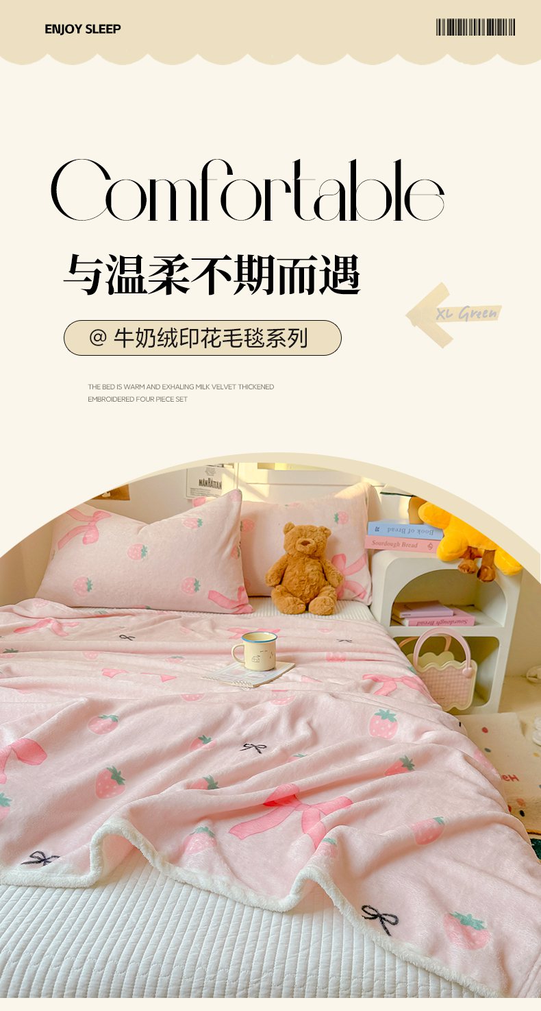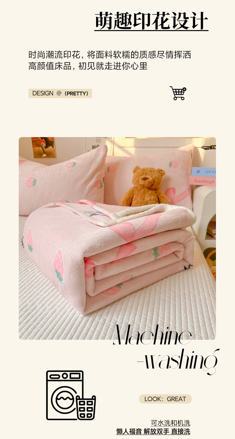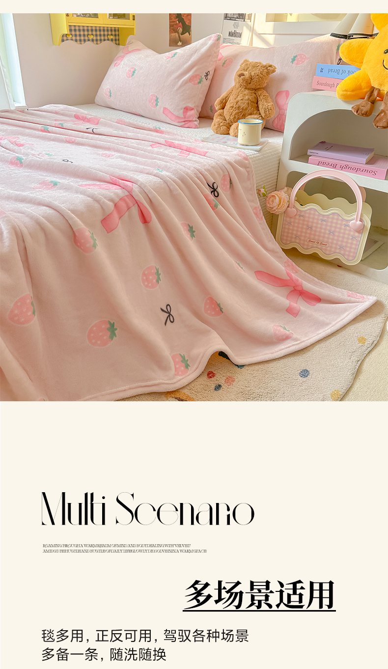 商品名称:韩巢家纺 2025新款四季可用牛奶绒多功能毛毯 草莓园