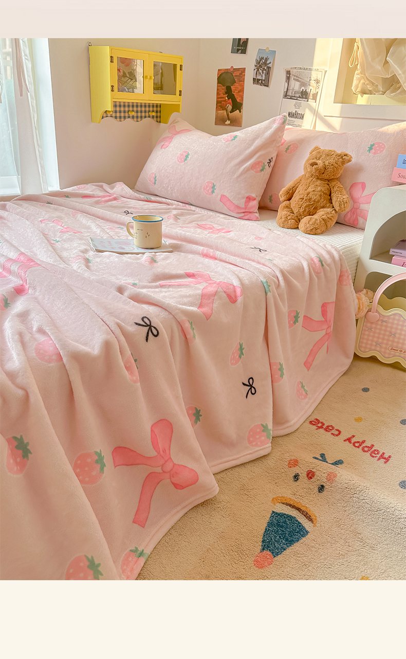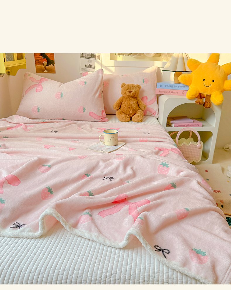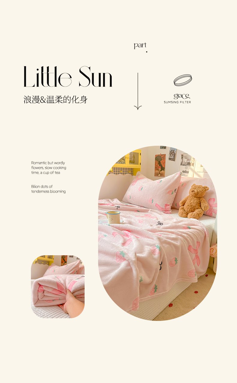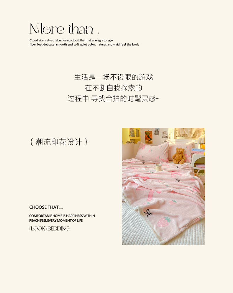 商品名称:韩巢家纺 2025新款四季可用牛奶绒多功能毛毯 草莓园