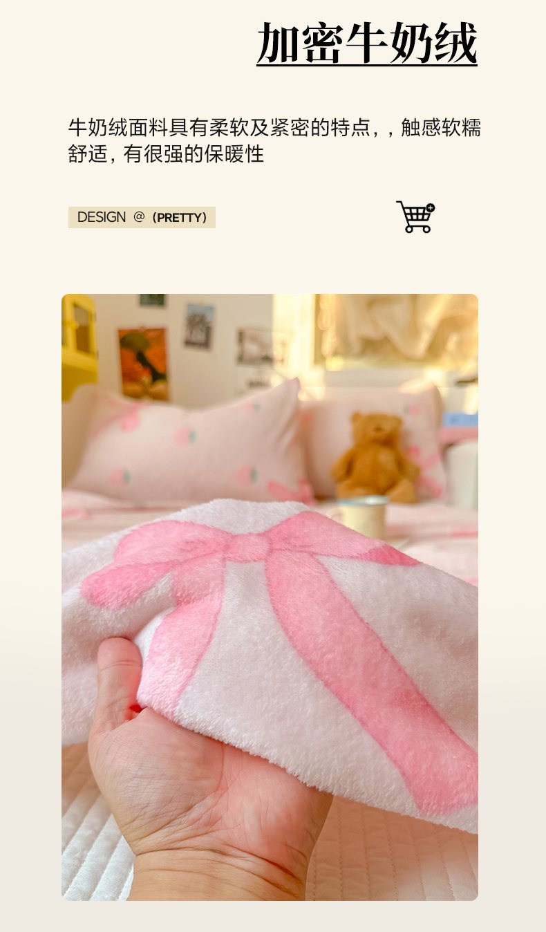 韩巢家纺 2025新款高克重印花牛奶绒床品四件套 爱心小樱桃,爱心小樱桃
