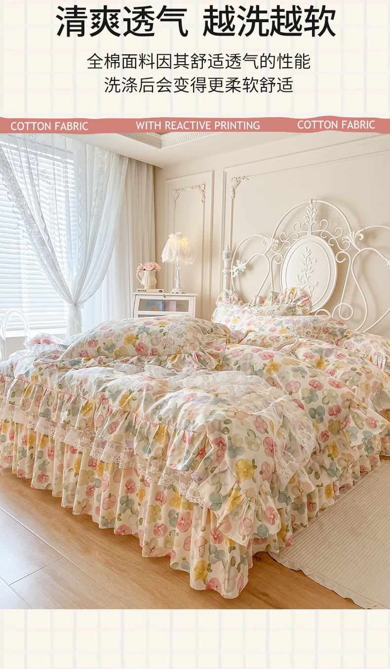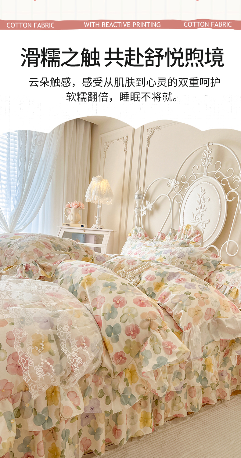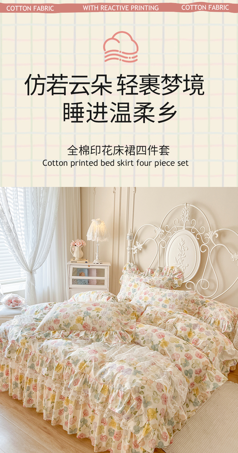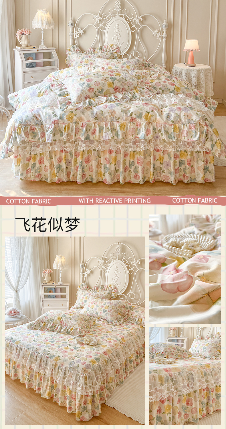 当前位置: 91家纺网 > 商品网购 > 床品套件 > 四件套 > 全棉普通四件套 > 网红馆(ck家纺) 2025新款全棉纯棉印花13372床裙四件套 飞花似梦