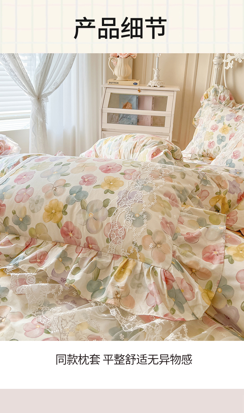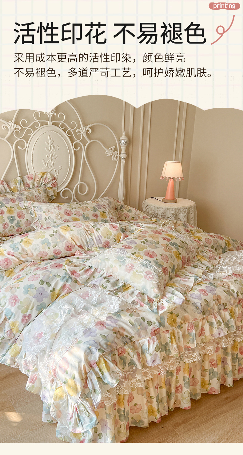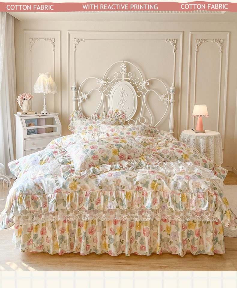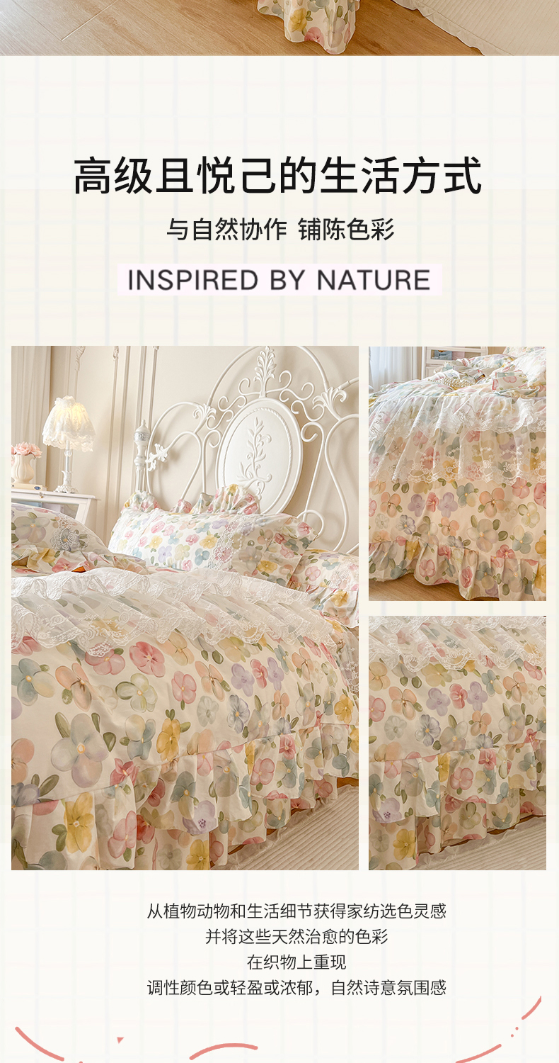 当前位置: 91家纺网 > 商品网购 > 床品套件 > 四件套 > 全棉普通四件套 > 网红馆(ck家纺) 2025新款全棉纯棉印花13372床裙四件套 飞花似梦