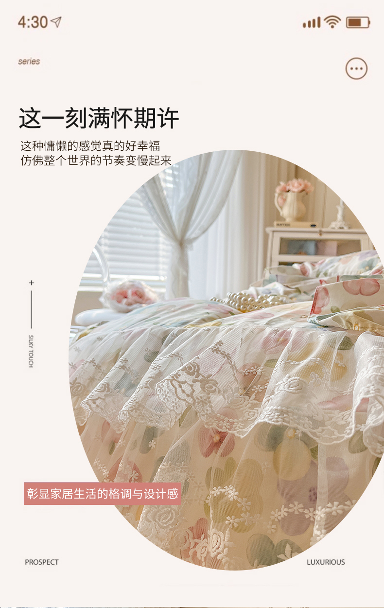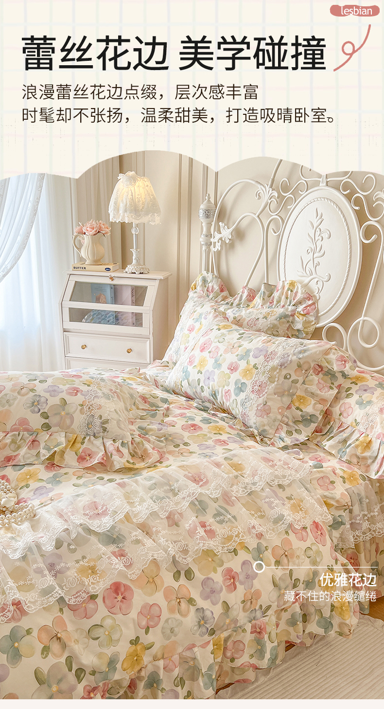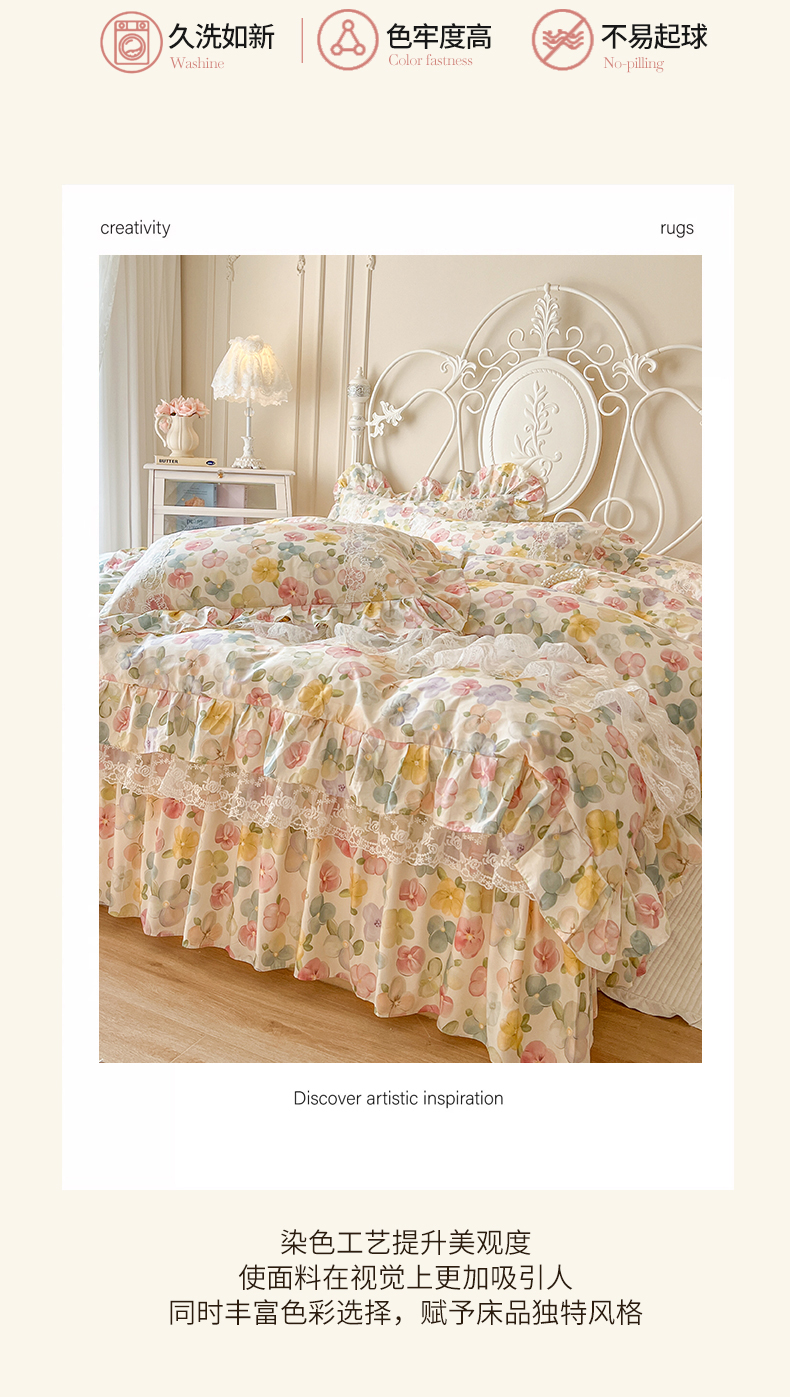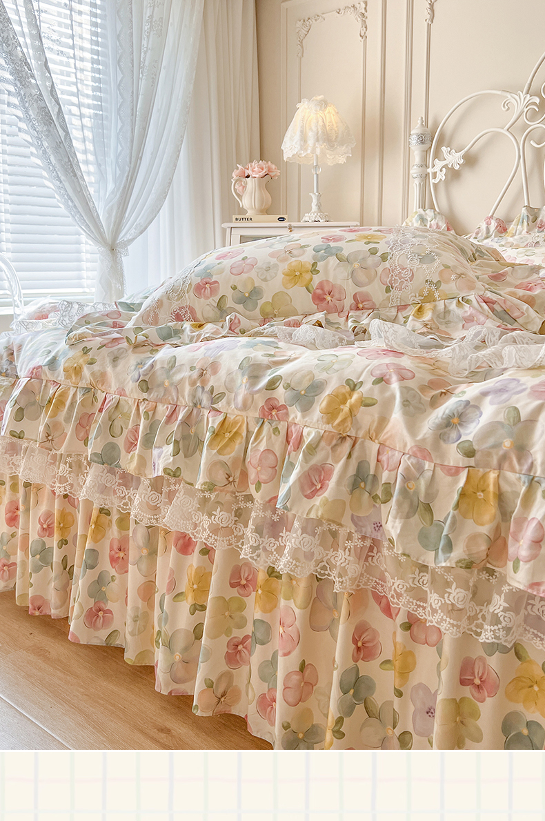 当前位置: 91家纺网 > 商品网购 > 床品套件 > 四件套 > 全棉普通四件套 > 网红馆(ck家纺) 2025新款全棉纯棉印花13372床裙四件套 飞花似梦