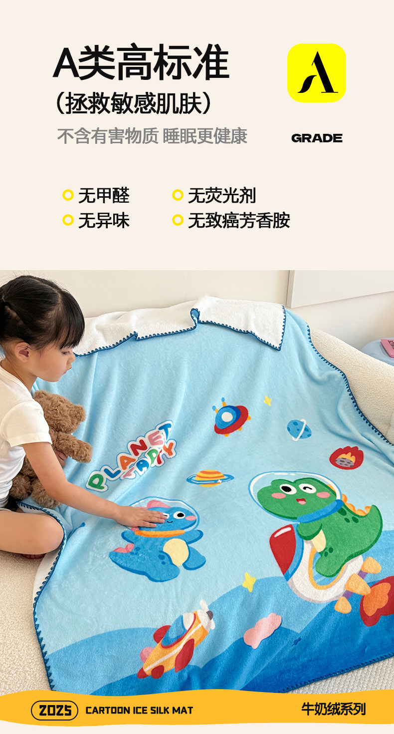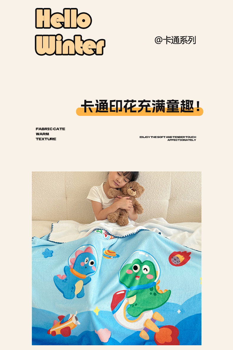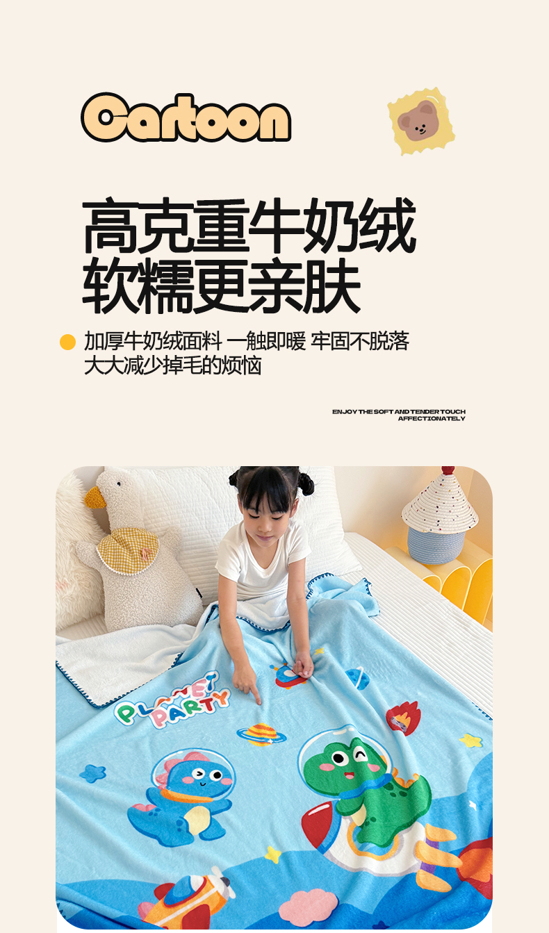 (总)嗨生活 2025新款牛奶绒儿童被幼儿园冬被春秋被,飞机恐龙,乖乖兔,皇冠恐龙,卡通小恐龙,可爱狮子,可爱小兔,快乐熊猫,快乐宇航熊,萌萌汽车,暖羊羊,挖掘机,消防警车,幸运猫,幸运女孩