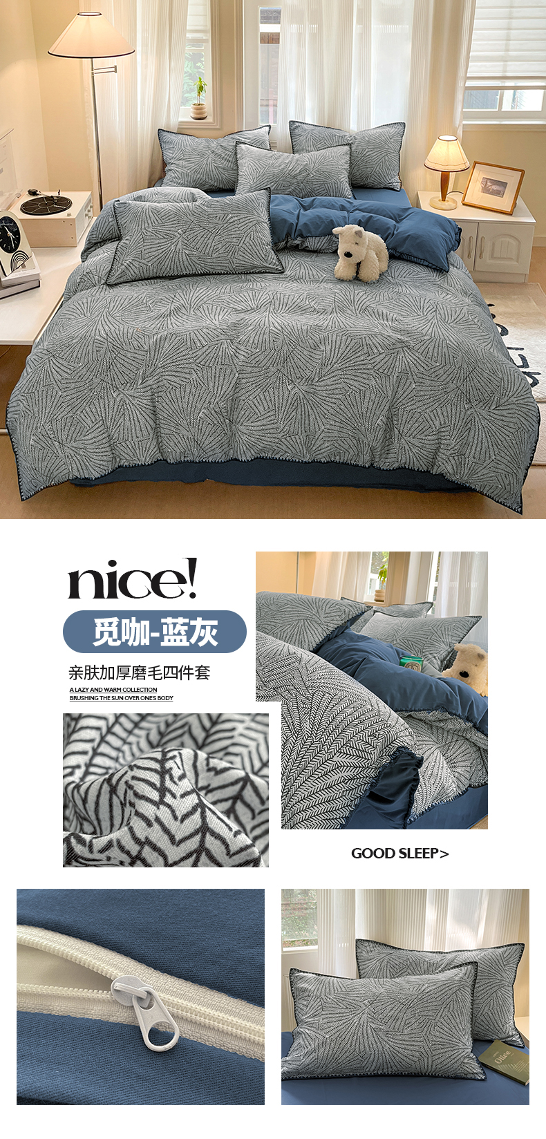 当前位置: 91家纺网 > 商品网购 > 床品套件 > 四件套 > 磨毛活性四件套 > 置顶家纺 2024新款亲肤加厚磨毛四件套-觅咖 觅咖-灰色