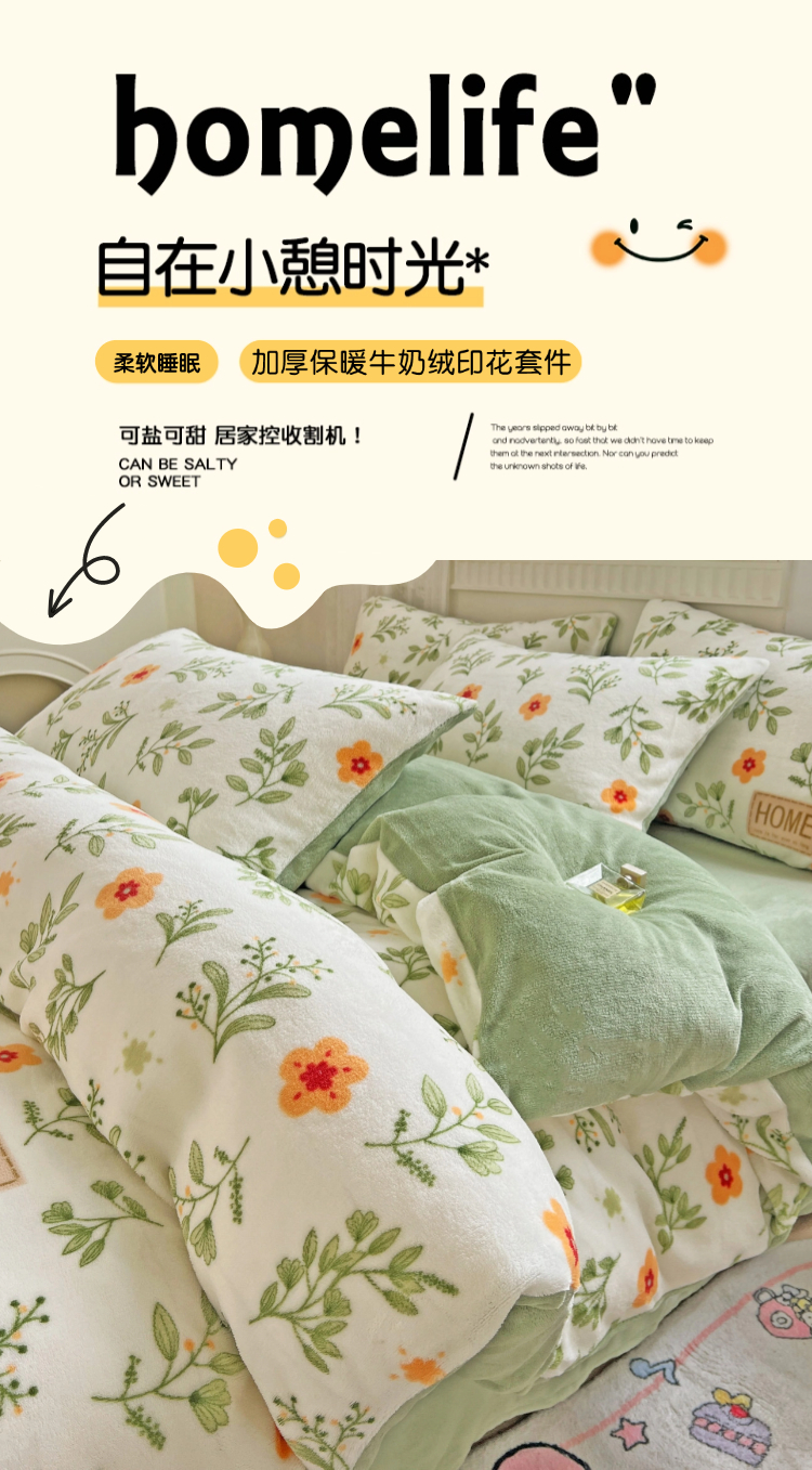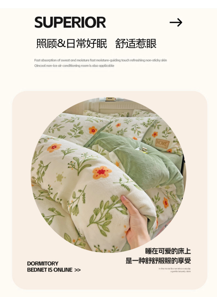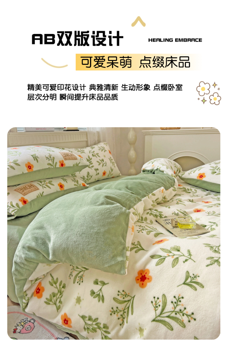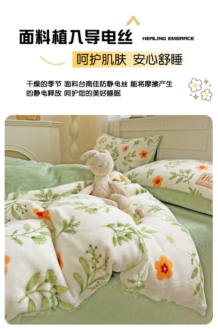 当前位置: 91家纺网 > 商品网购 > 床品套件 > 四件套 > 牛奶绒四件套 > 维娜斯家纺 2025新款牛奶绒印花四件套加厚保暖 青柠薄荷