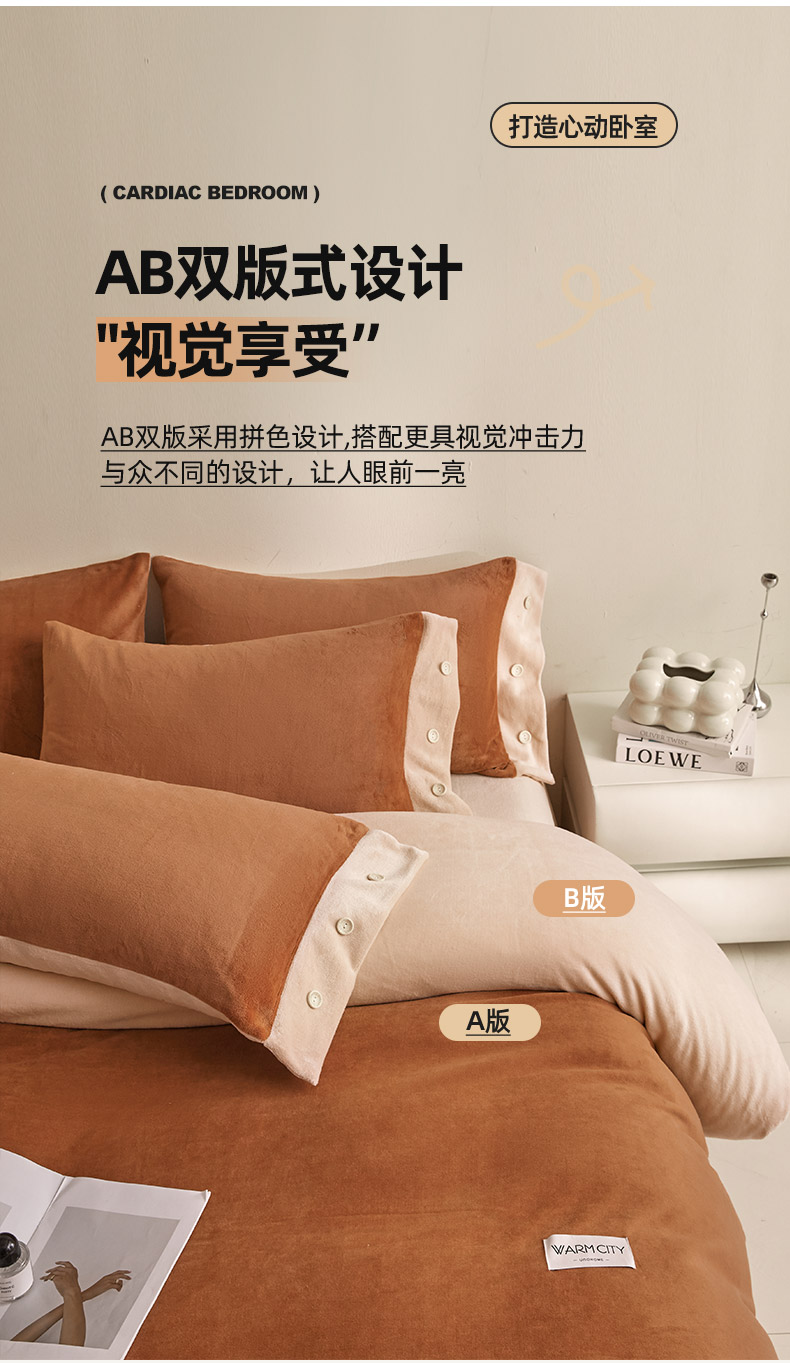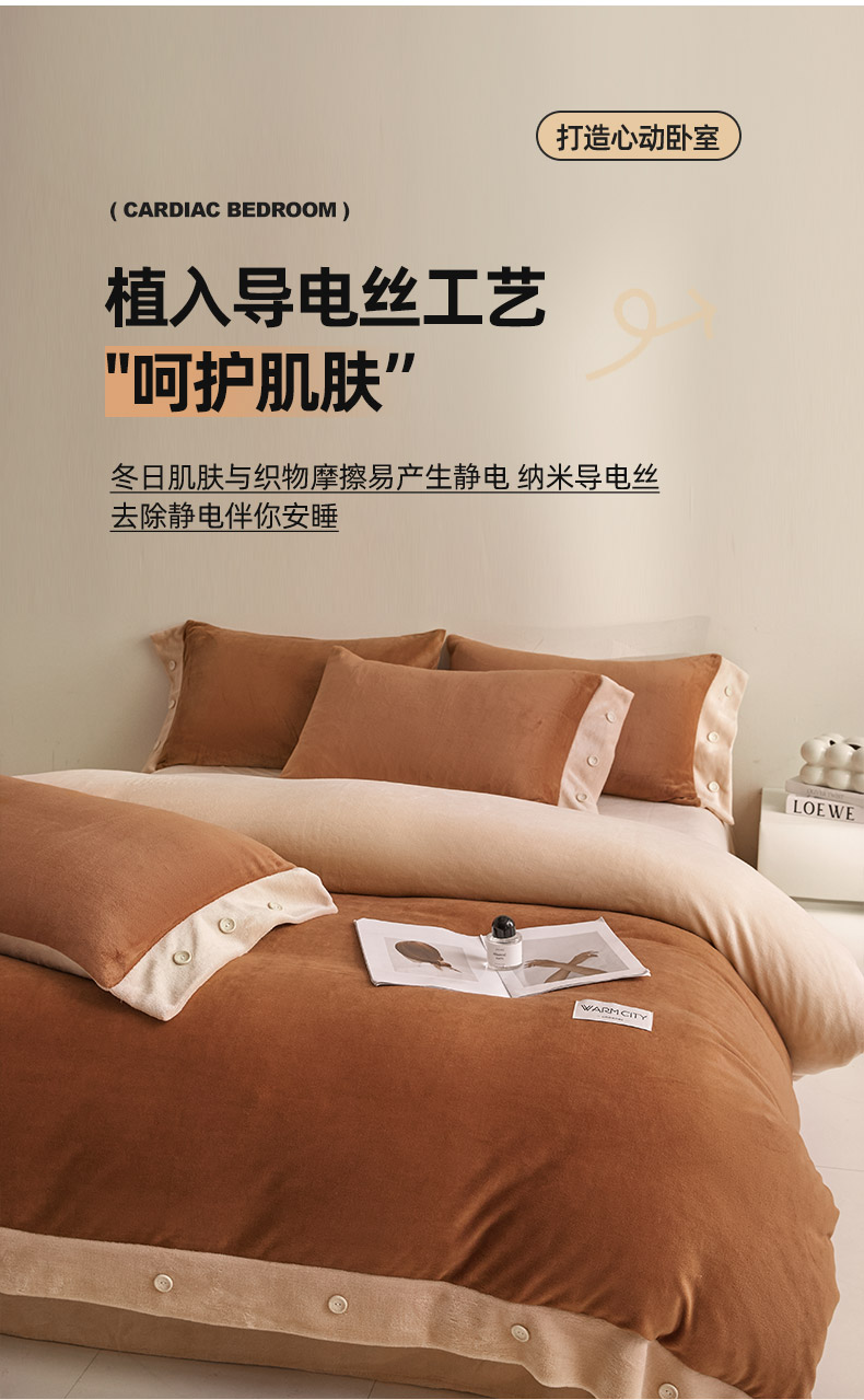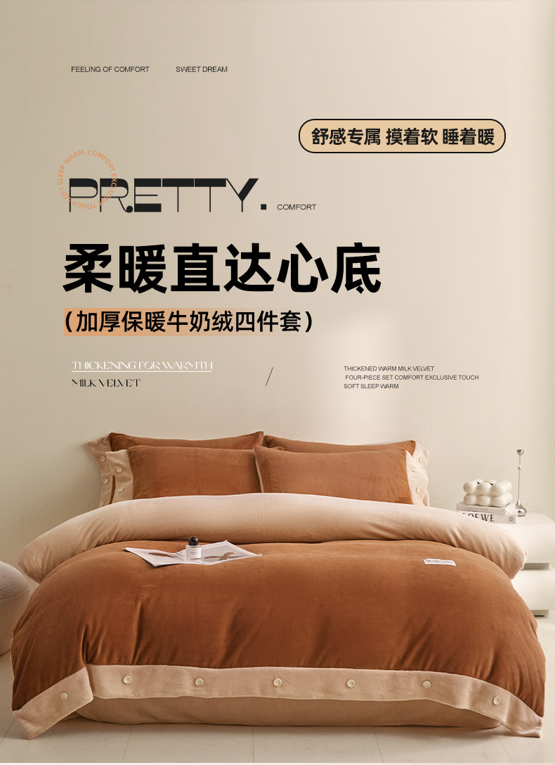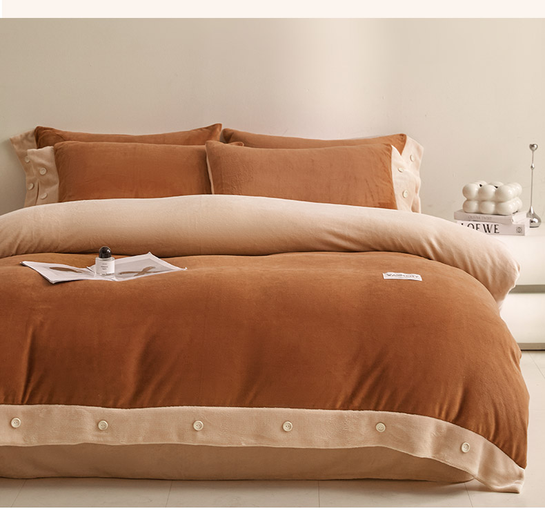 吾诺家居 吾诺 2025 双拼色牛奶绒四件套纽扣四件套钮扣牛奶绒四件套 - 纽扣系列 钮扣-唐茶色