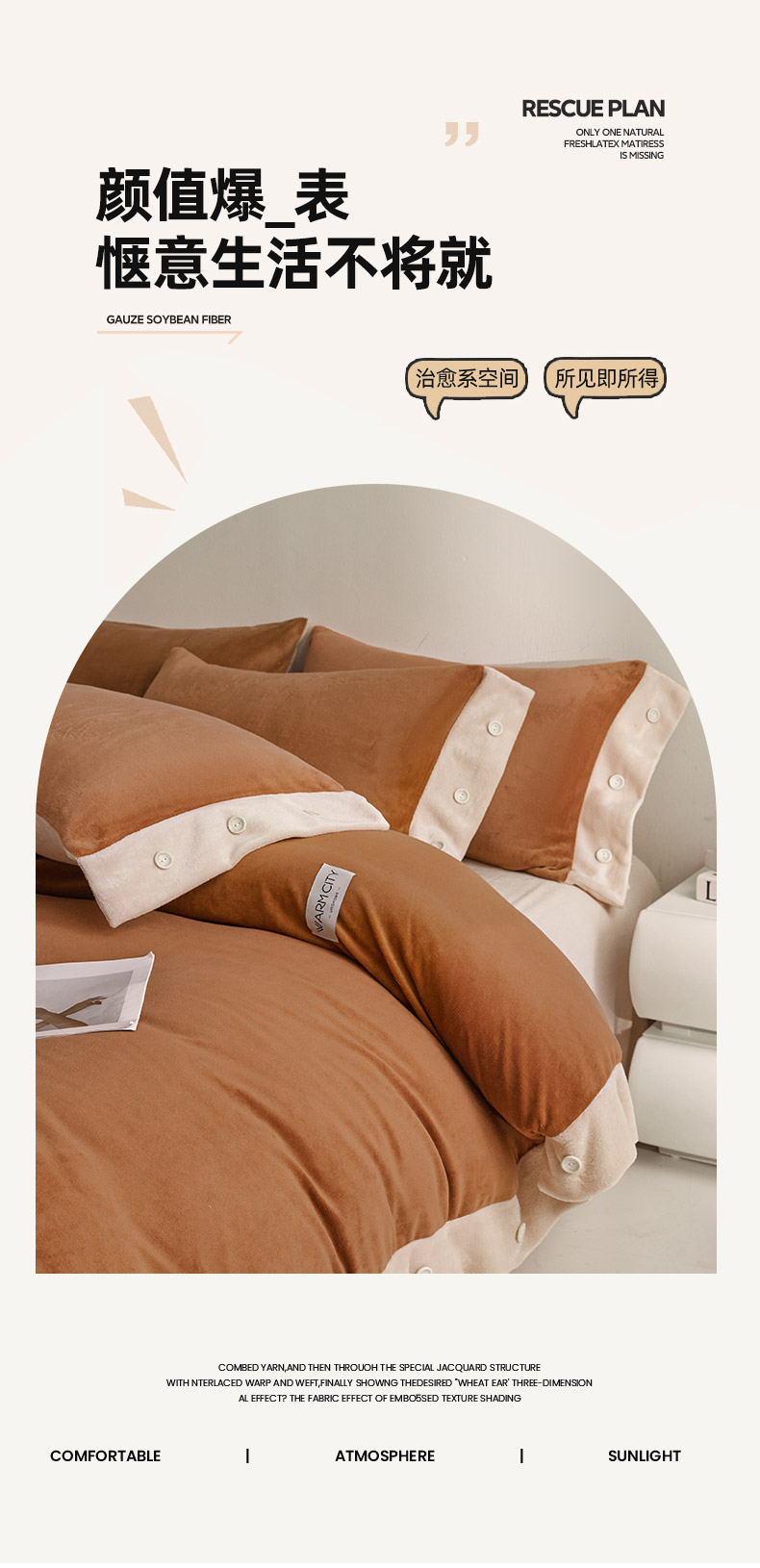 商品名称:吾诺家居 吾诺 2025 双拼色牛奶绒四件套纽扣四件套钮扣牛奶绒四件套 - 纽扣系列 钮扣-唐茶色