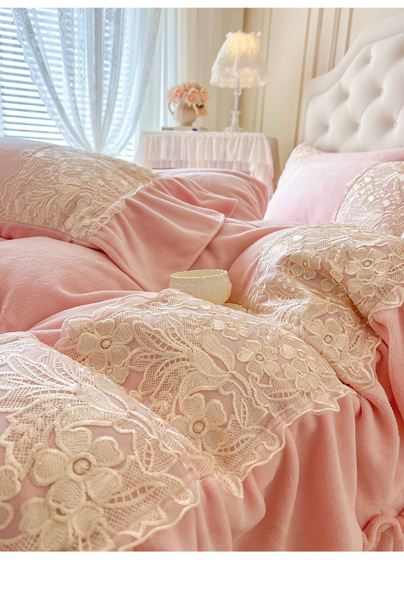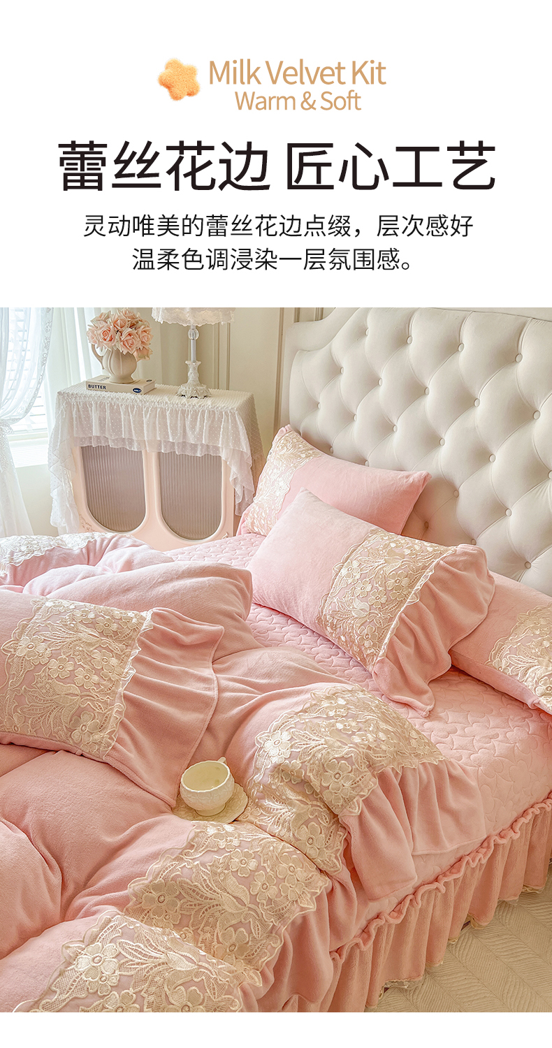商品名称:(总)网红馆(ck家纺) 2025新款牛奶绒蕾丝花边倾城系列四件套