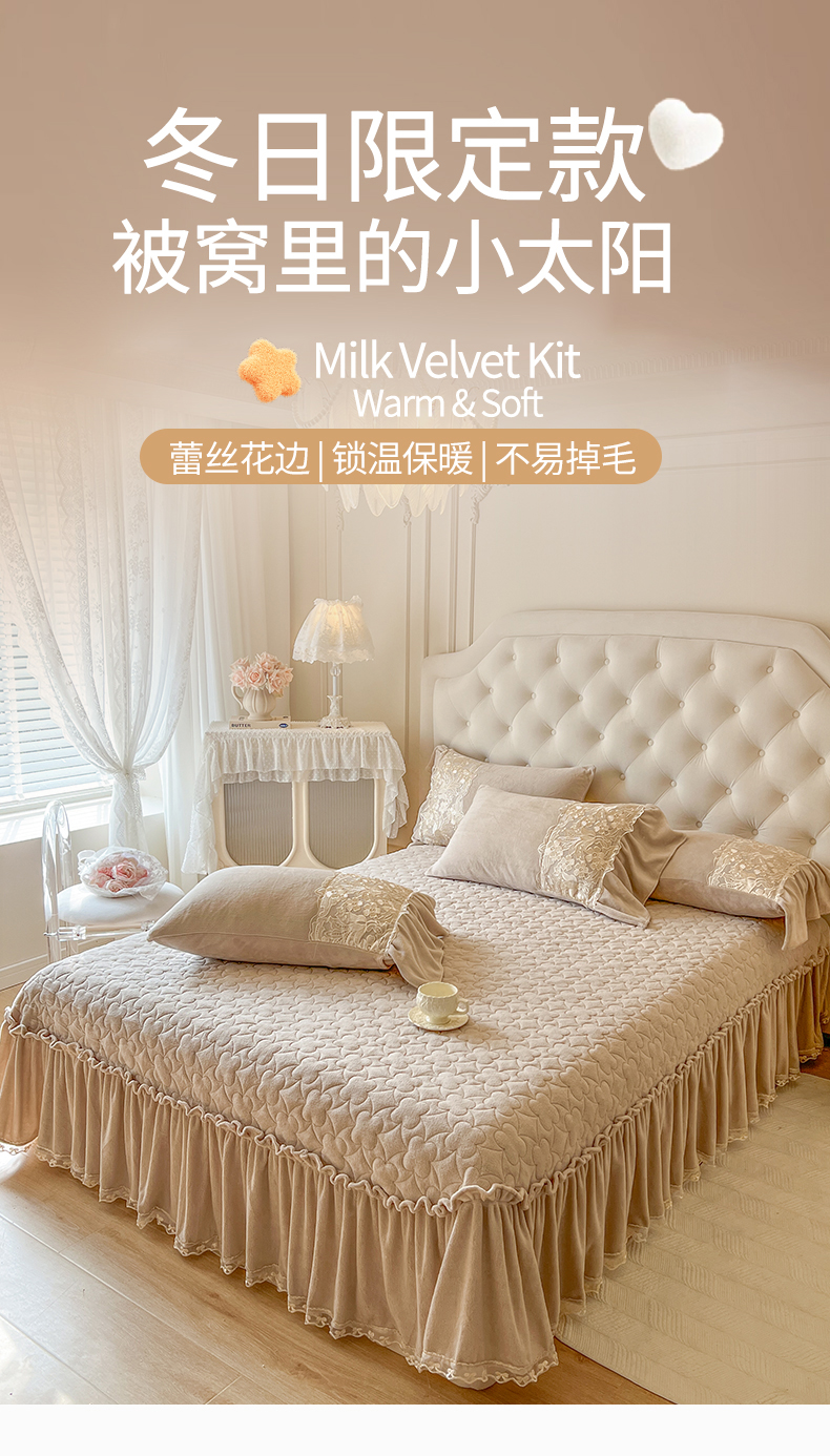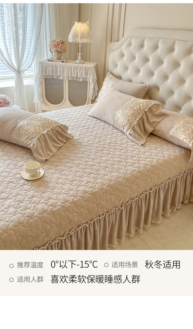 网红馆(ck家纺) 2025新款牛奶绒蕾丝花边倾城系列单床盖 倾城-咖