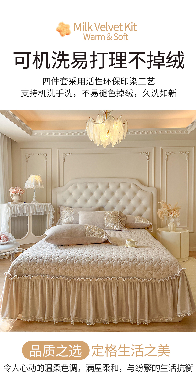 (总)网红馆(ck家纺) 2025新款亲肤舒适牛奶绒蕾丝边床裙四件套-秘密花园,秘密花园-粉色,秘密花园-卡其,秘密花园-米色,秘密花园-紫色