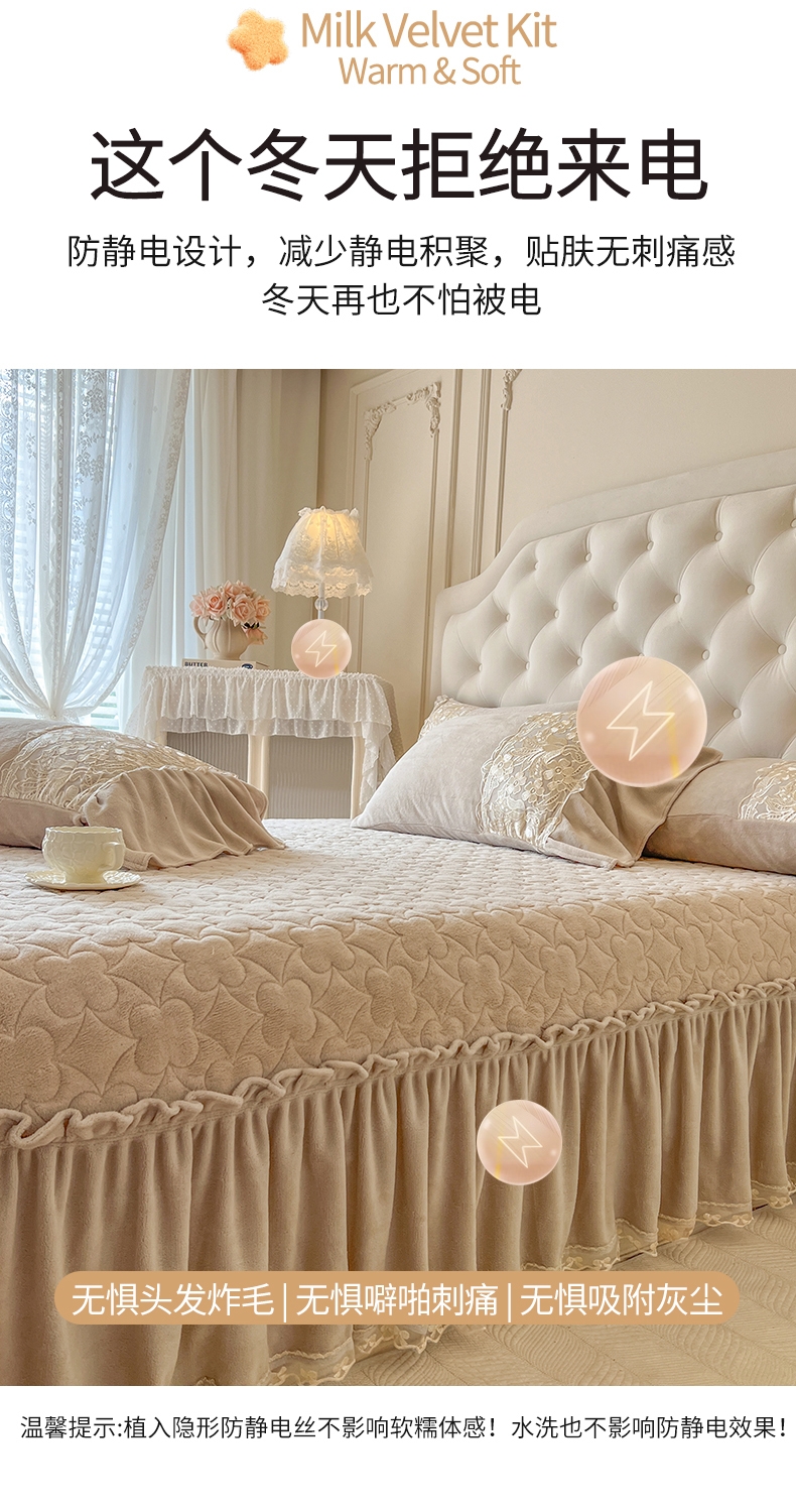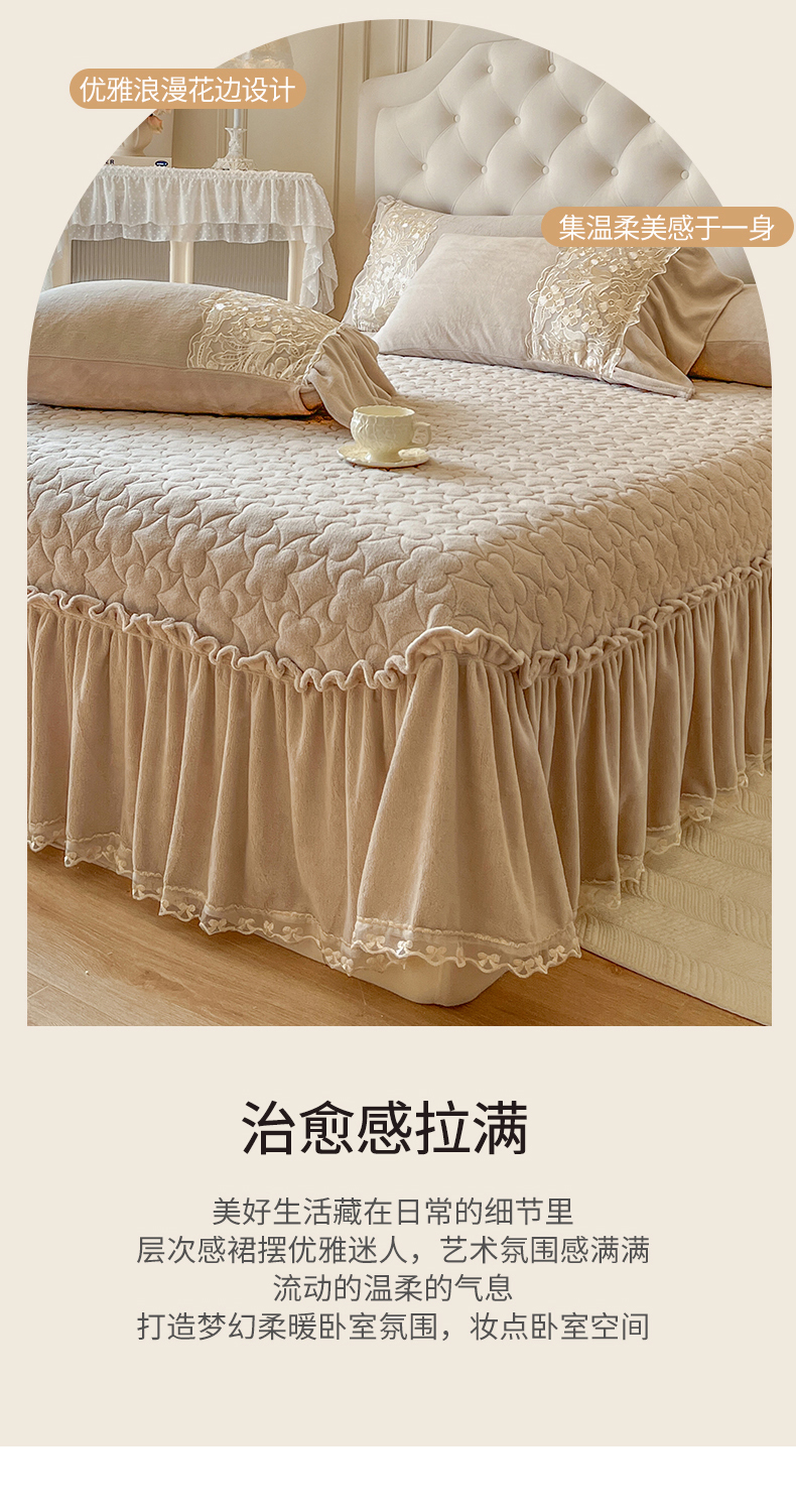 (总)网红馆(ck家纺) 2025新款高克重牛奶绒单床裙 床裙单件卡妮娜系列,卡妮娜-粉色,卡妮娜-灰色,卡妮娜-卡其,卡妮娜-绿色,卡妮娜-米色