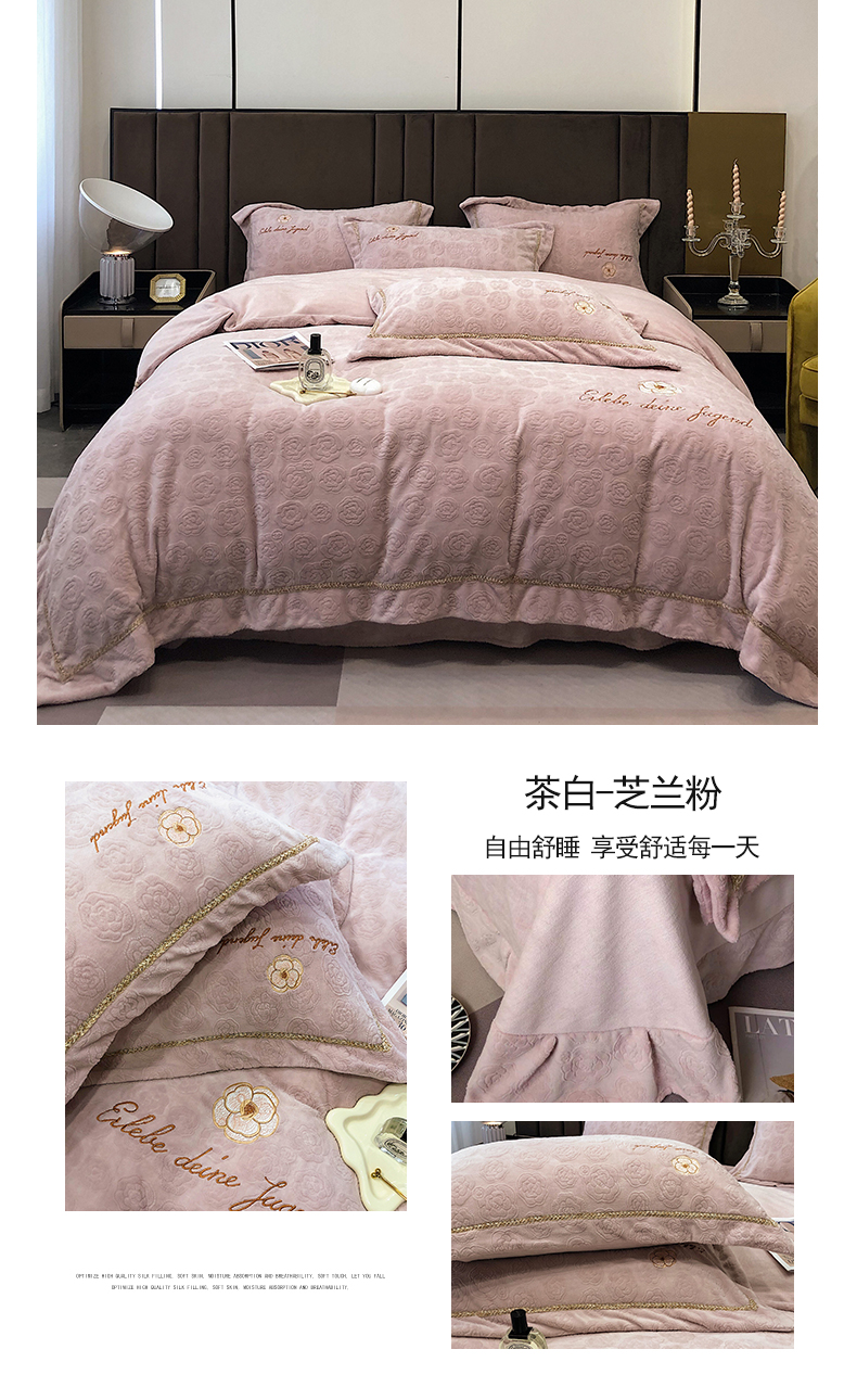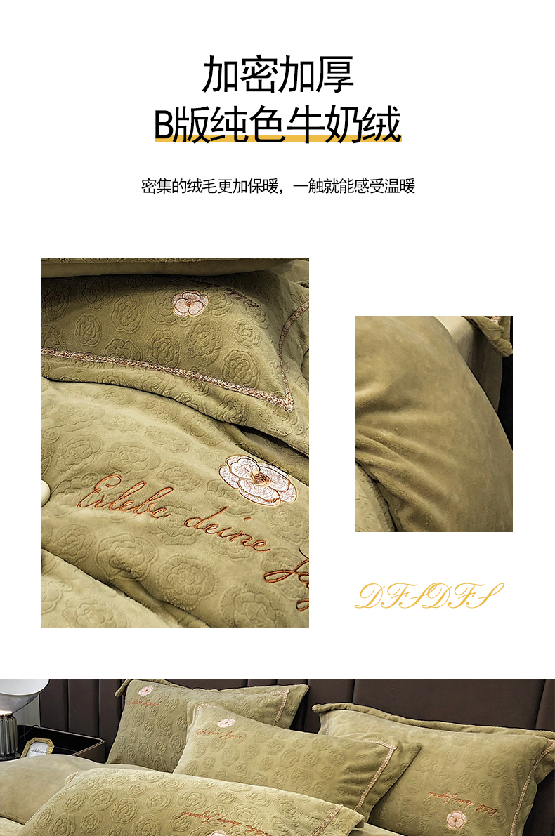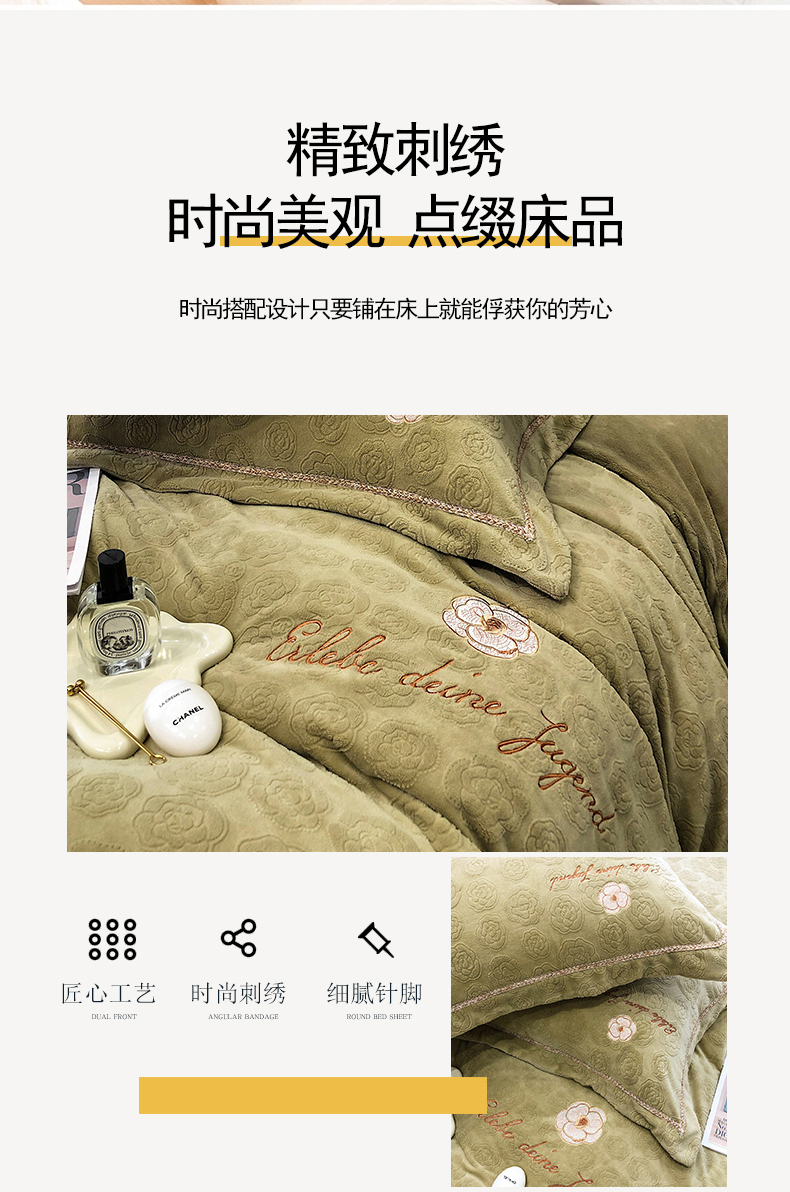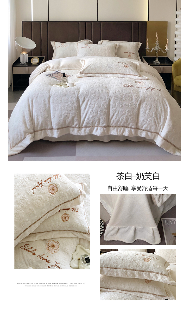 (总)娇逸家居 2025新款秋冬冰岛浮雕雕花牛奶暖绒刺绣四件套-茶白,茶白-海盐绿,茶白-芥黄,茶白-奶芙白,茶白-芝兰粉