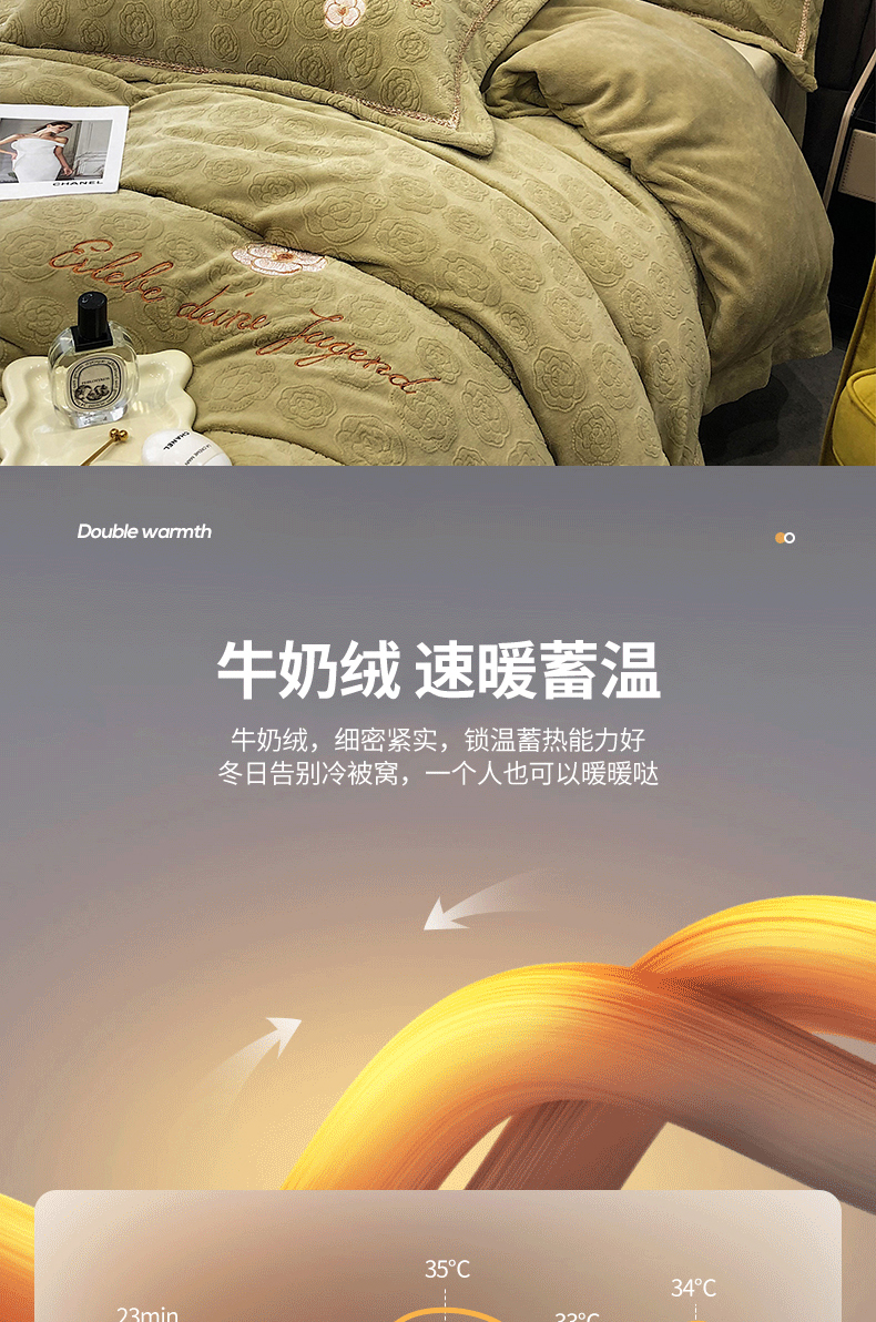 商品名称:娇逸家居 2025新款秋冬冰岛浮雕雕花牛奶暖绒刺绣四件套-茶白 茶白-芥黄