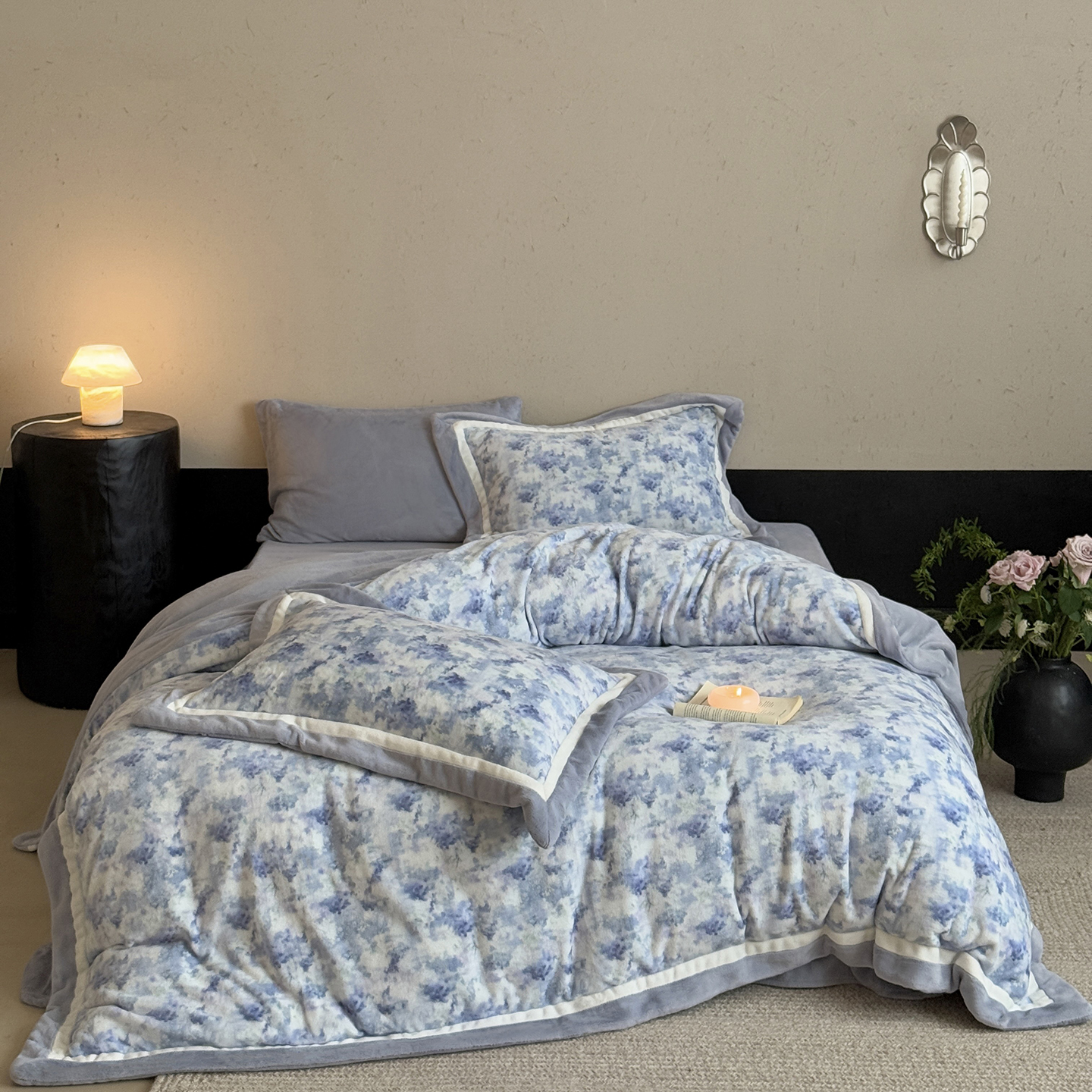 (总)多乐娜 2025新款高克重260g全消光牛奶绒数码印花法式油画风高端款四件套-安妮(会员-20)控价最低368起,安妮-紫