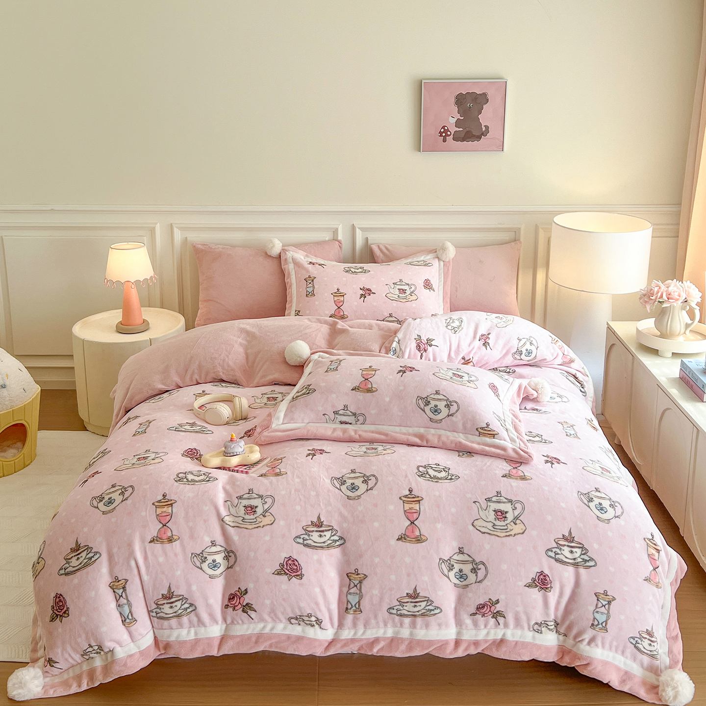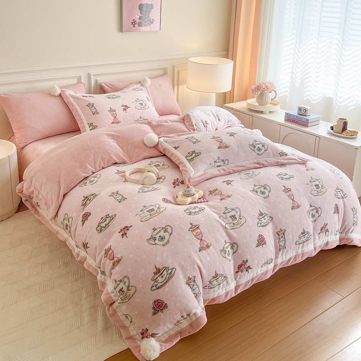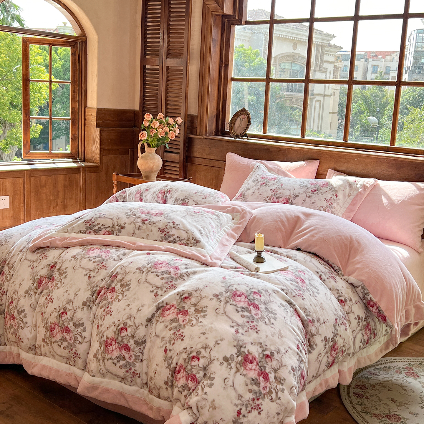 商品名称:多乐娜 2025新款高克重260g全消光牛奶绒数码印花法式油画风高端款四件套 (会员-20)控价最低368起 芝芝玫瑰