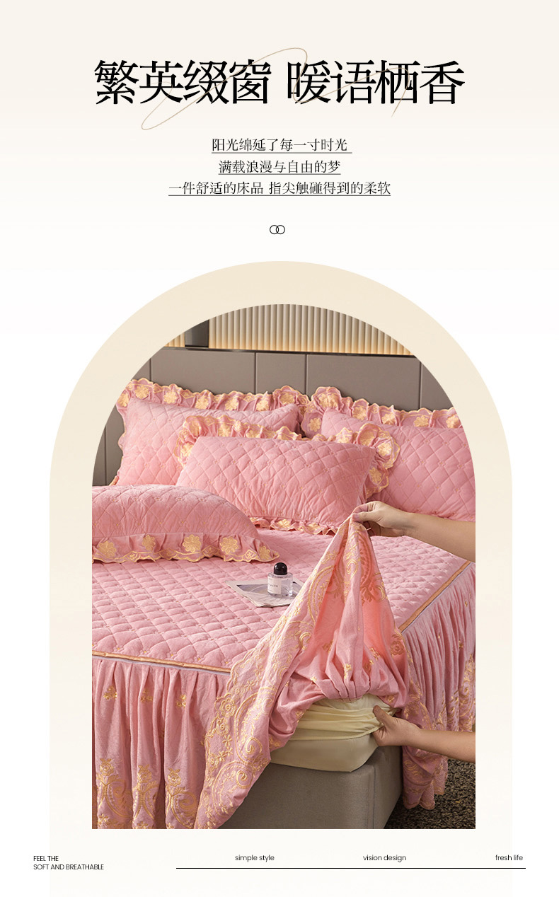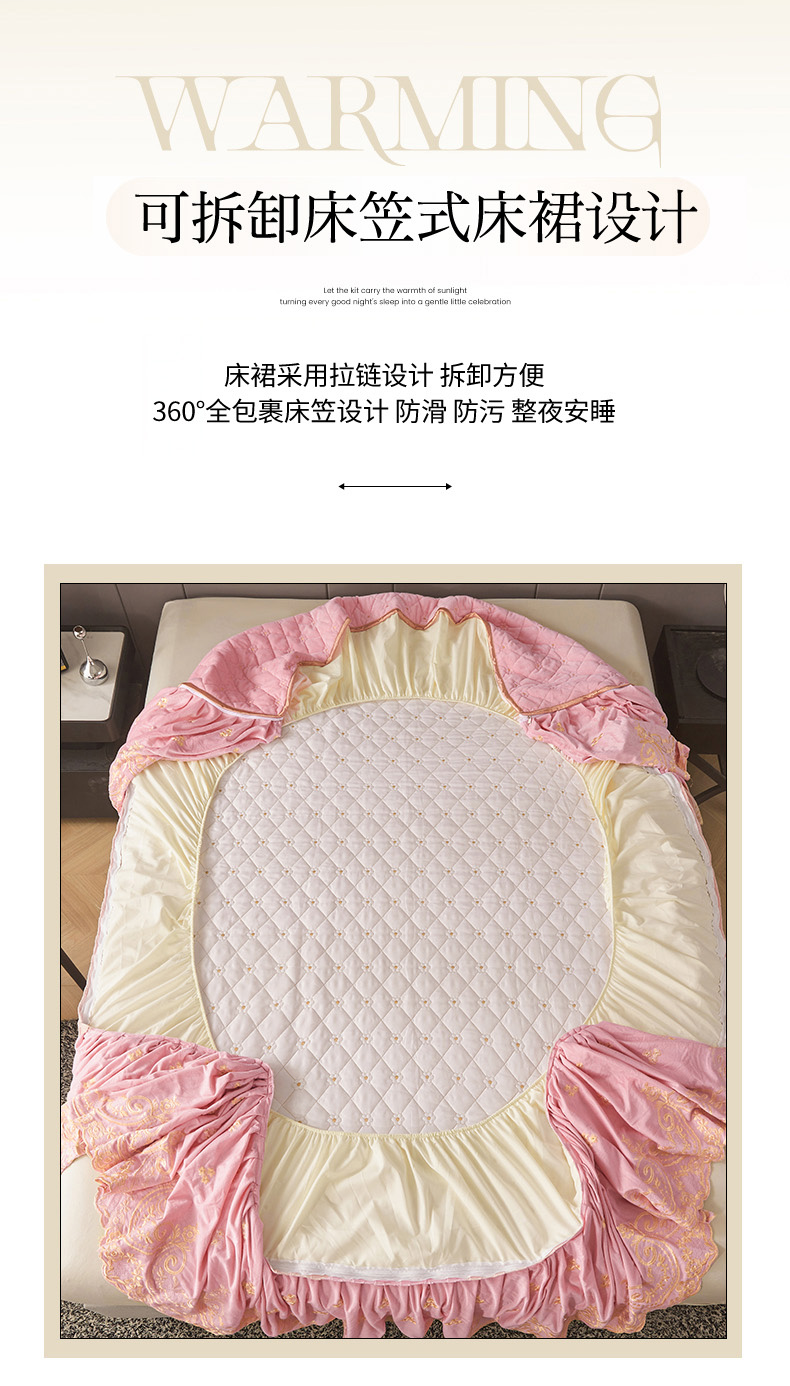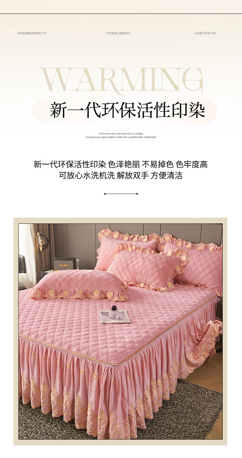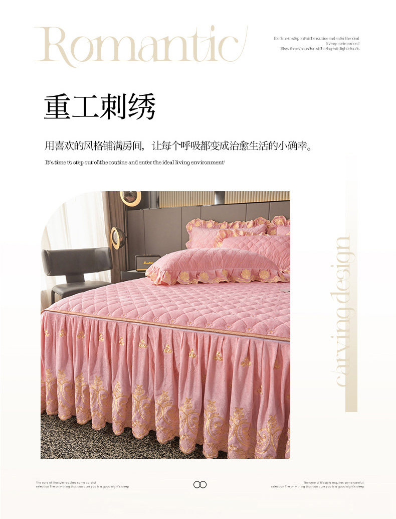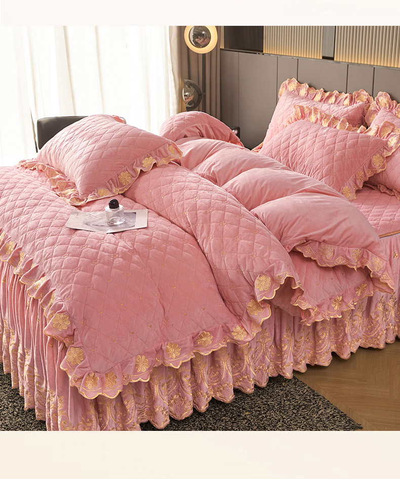 当前位置: 91家纺网 > 商品网购 > 床品套件 > 四件套 > 其它四件套 > 罗艺轩 2025新款婴儿绒加厚保暖床裙式四件套-心语 心语-樱花粉