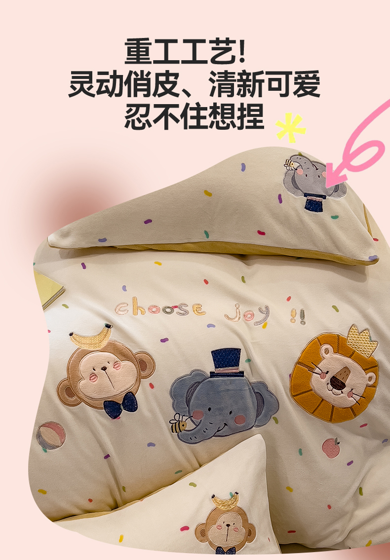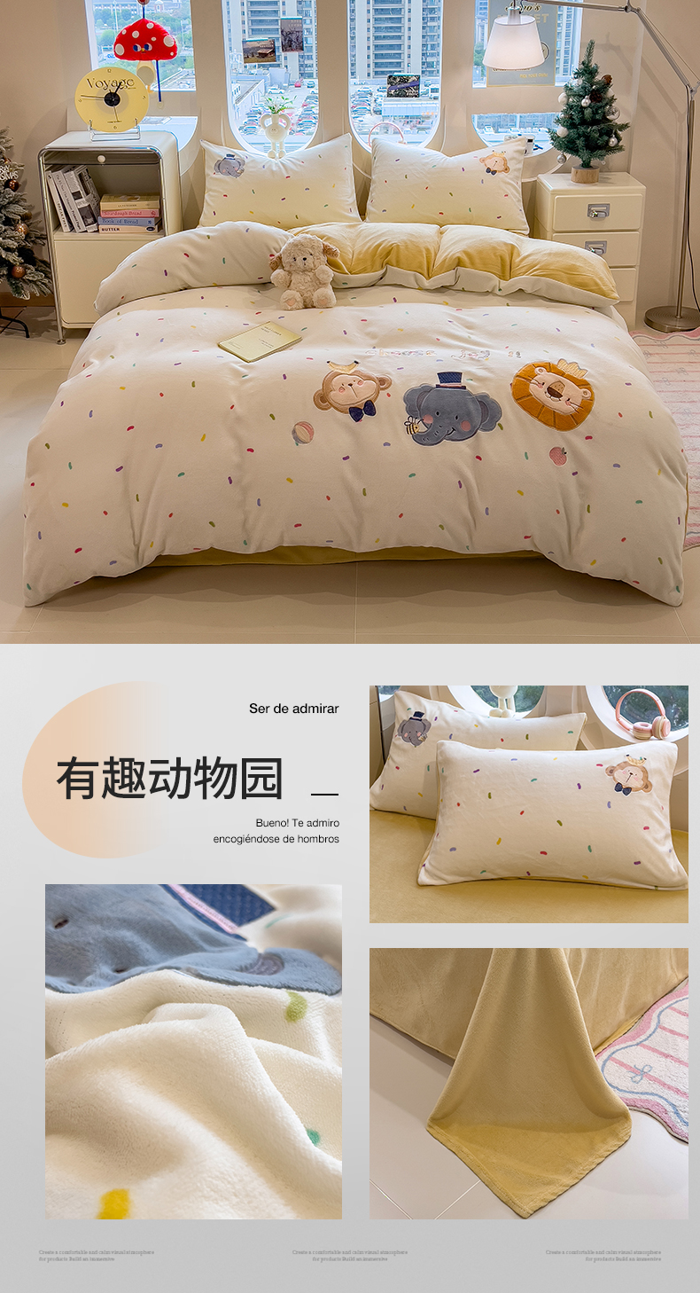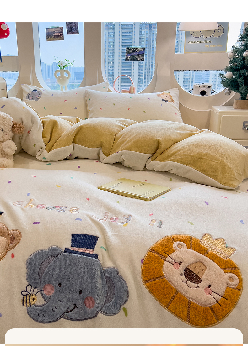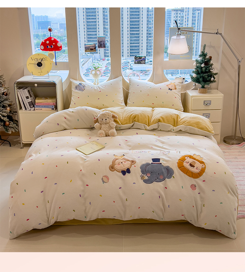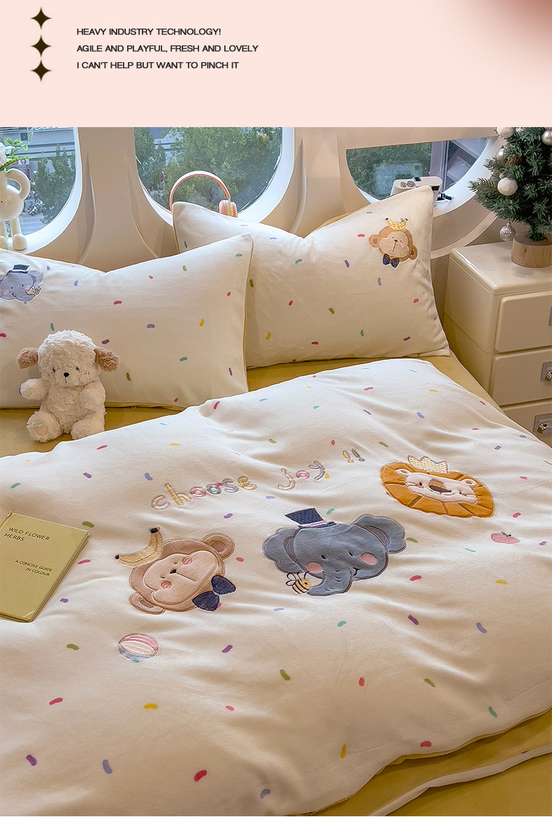 当前位置: 91家纺网 > 商品网购 > 床品套件 > 四件套 > 牛奶绒四件套 > 兄弟坊 2025新款卡通消光牛奶绒贴布绣四件套 有趣动物园