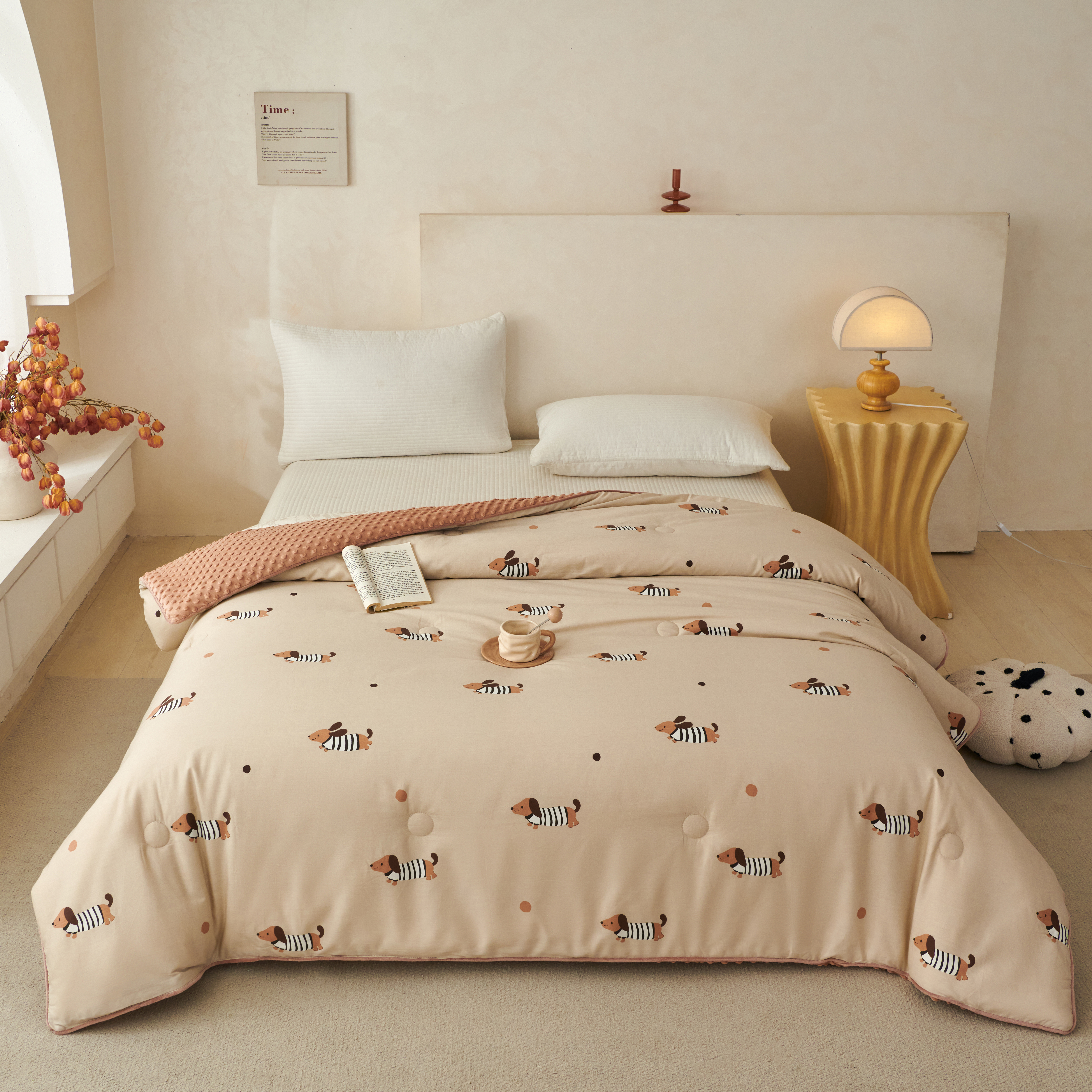 商品名称:莎果 2025新款60支纯棉舒适豆豆绒被子被芯 生日小狗 豆豆被