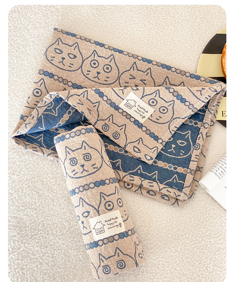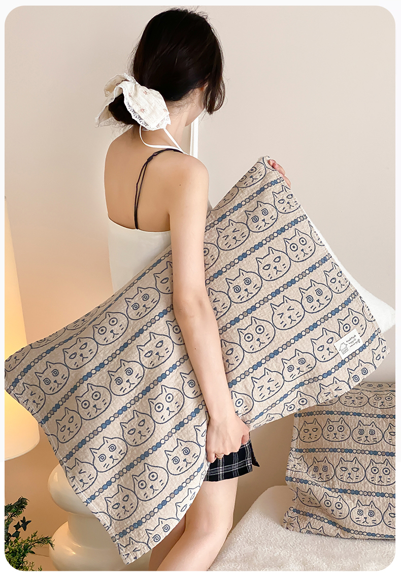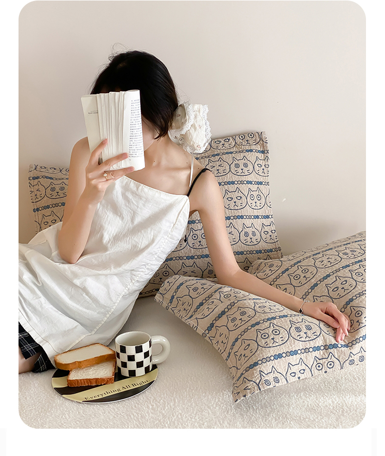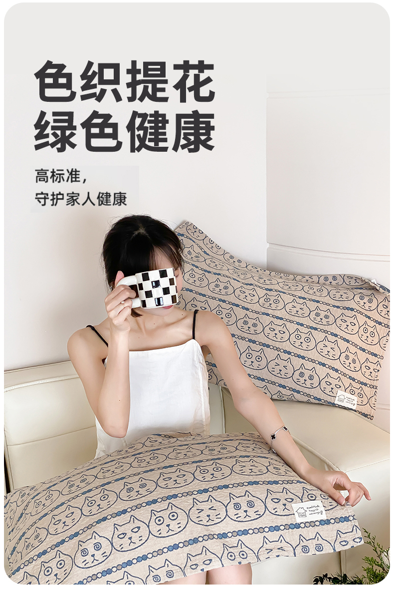 商品名称:麻依 2025新款安心棉枕巾四层全棉纱布枕头皮 搞怪猫