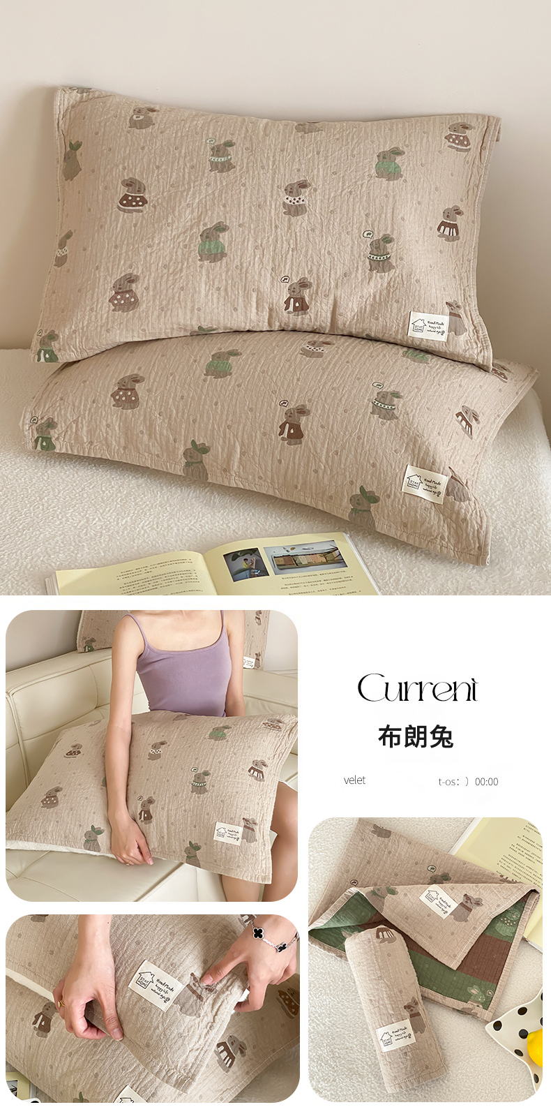 (总)麻依 2025新款安心棉枕巾四层全棉纱布枕头皮,布朗兔,彩虹点点,点点蝴蝶结-粉,点点蝴蝶结-米白,搞怪猫,韩系小樱桃,焦糖草莓,兰溪,漫语,木栖,天猫精灵,小波点,组合图