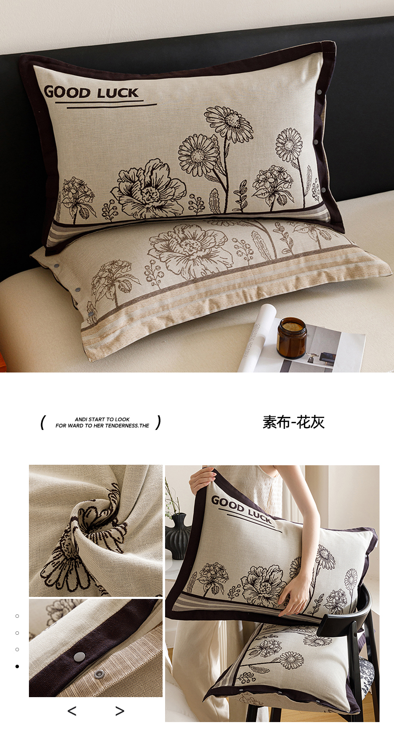 悦然毛巾被 2025新款全棉四层提花纱布美拉德凤格枕套 素布花灰