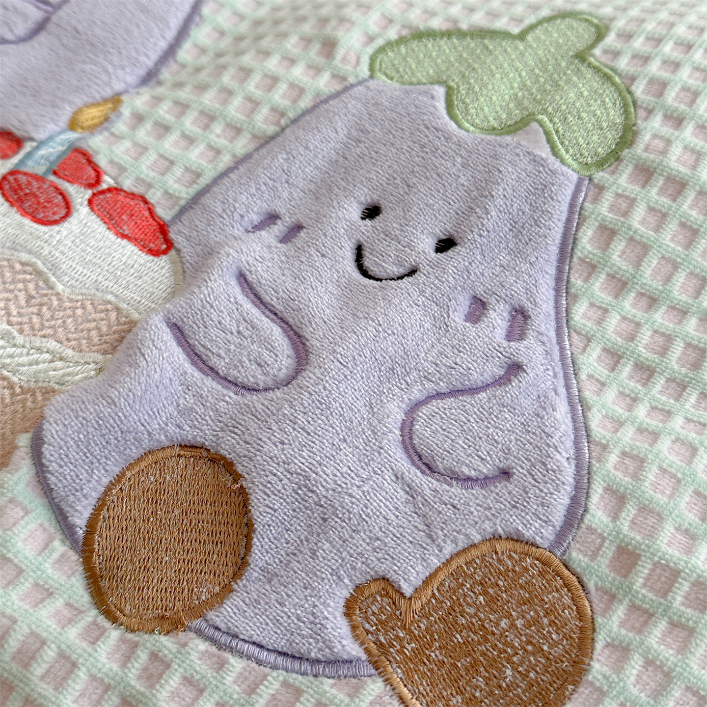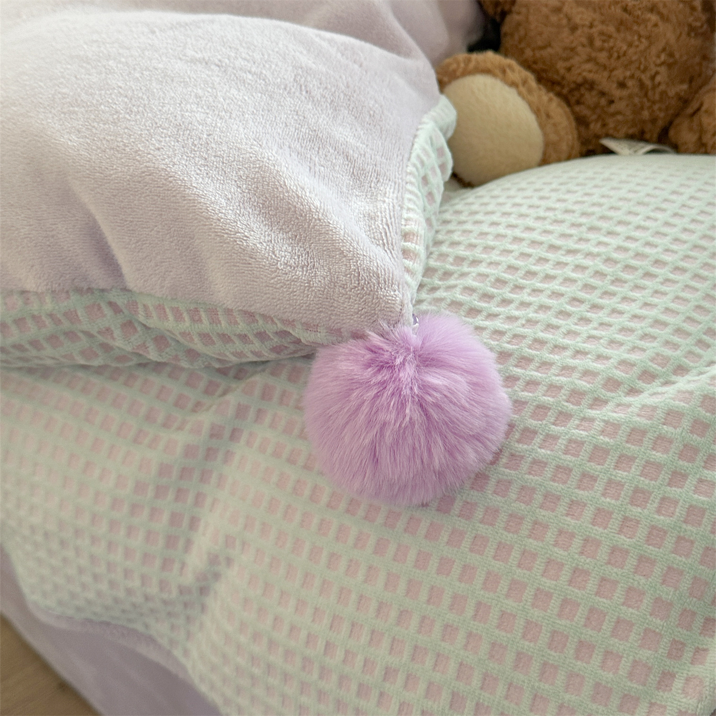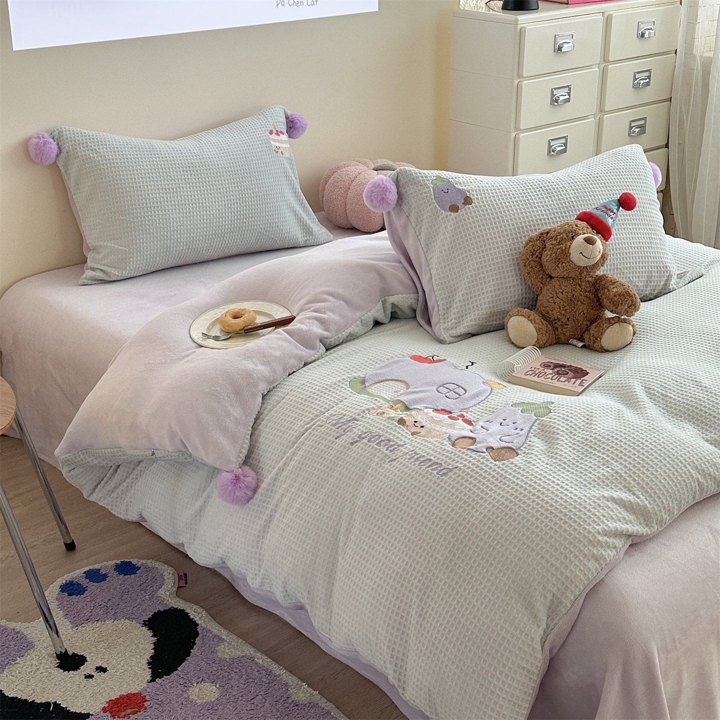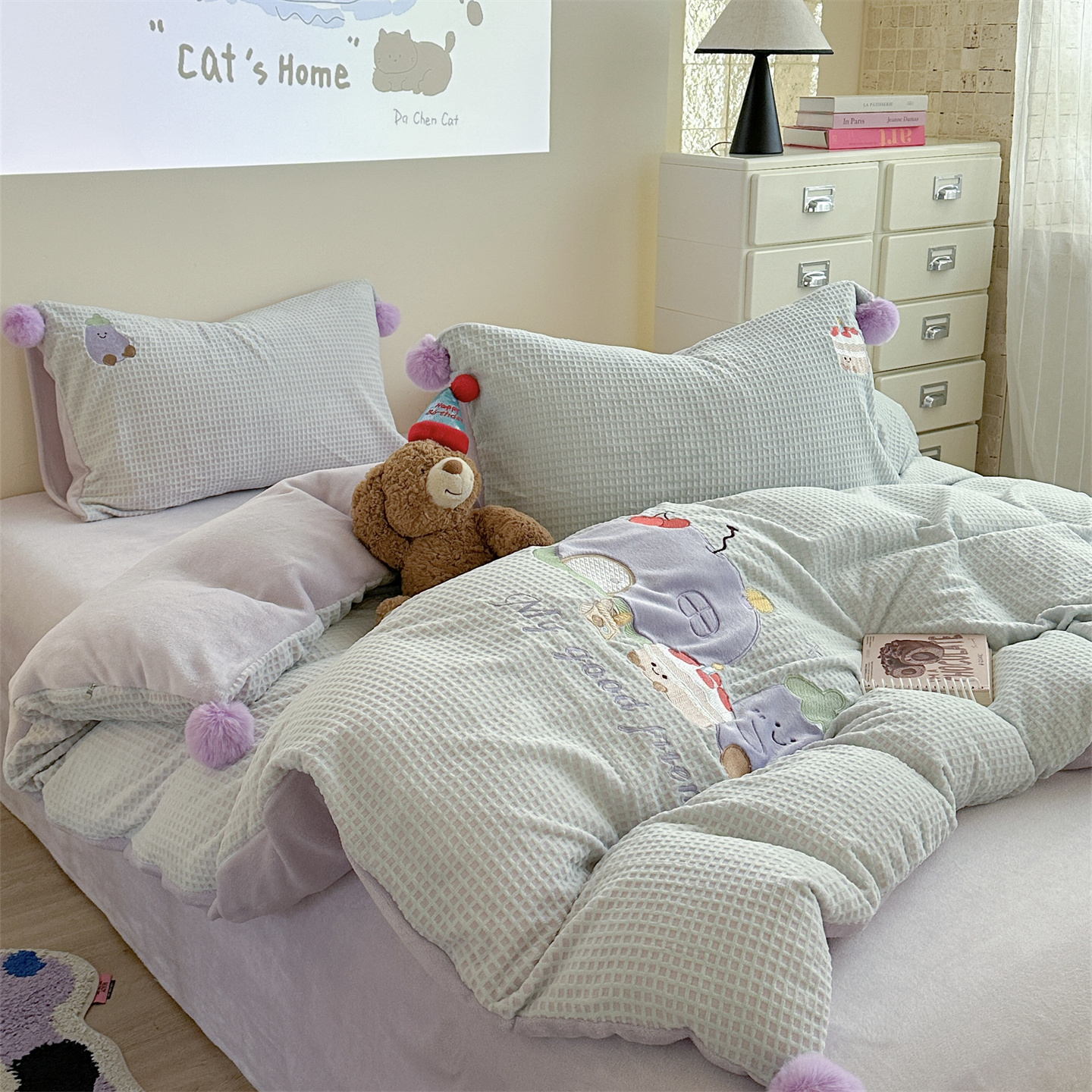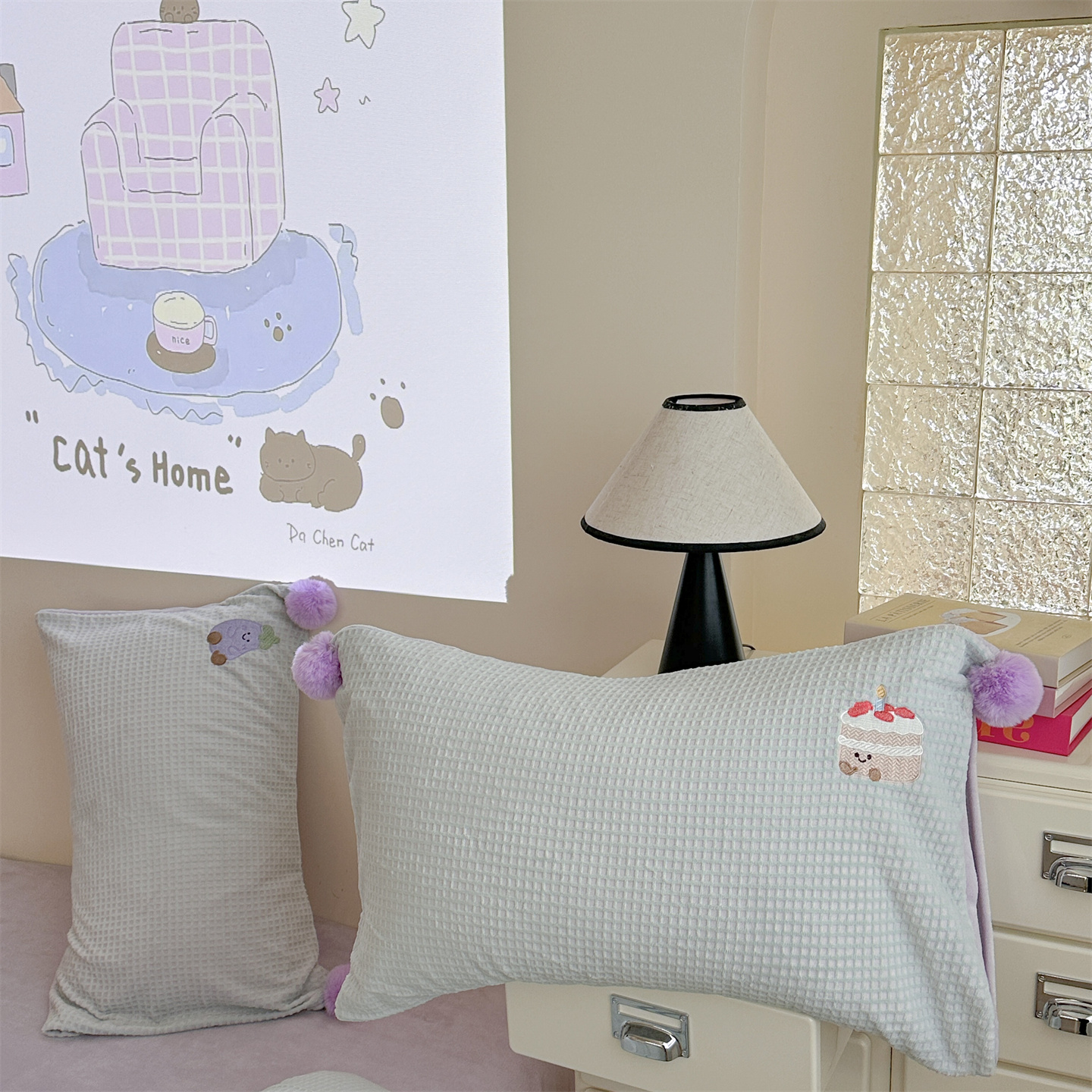柚子YOUTH 2025新款华夫格提花绒刺绣四件套 茄子蛋糕屋