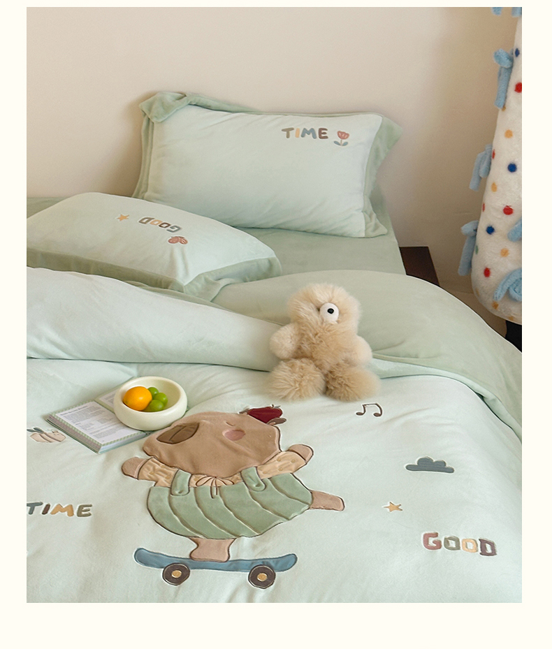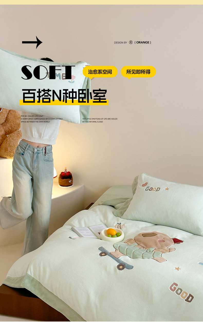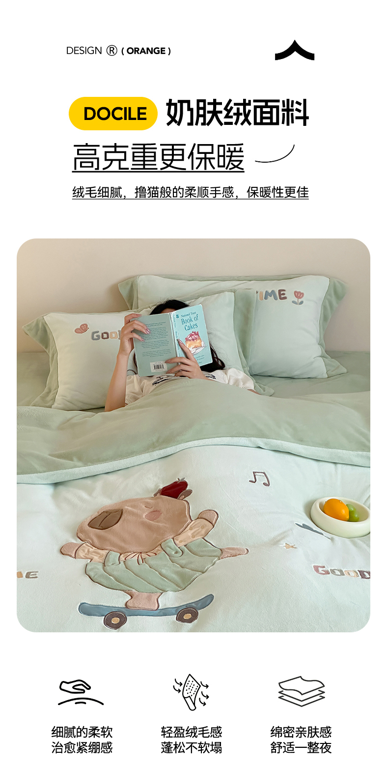 商品名称:(总)泽西家纺+V17798841158发大图 2025新品秋冬加厚保暖240克奶肤绒宽边卡通贴布绣牛奶绒四件套