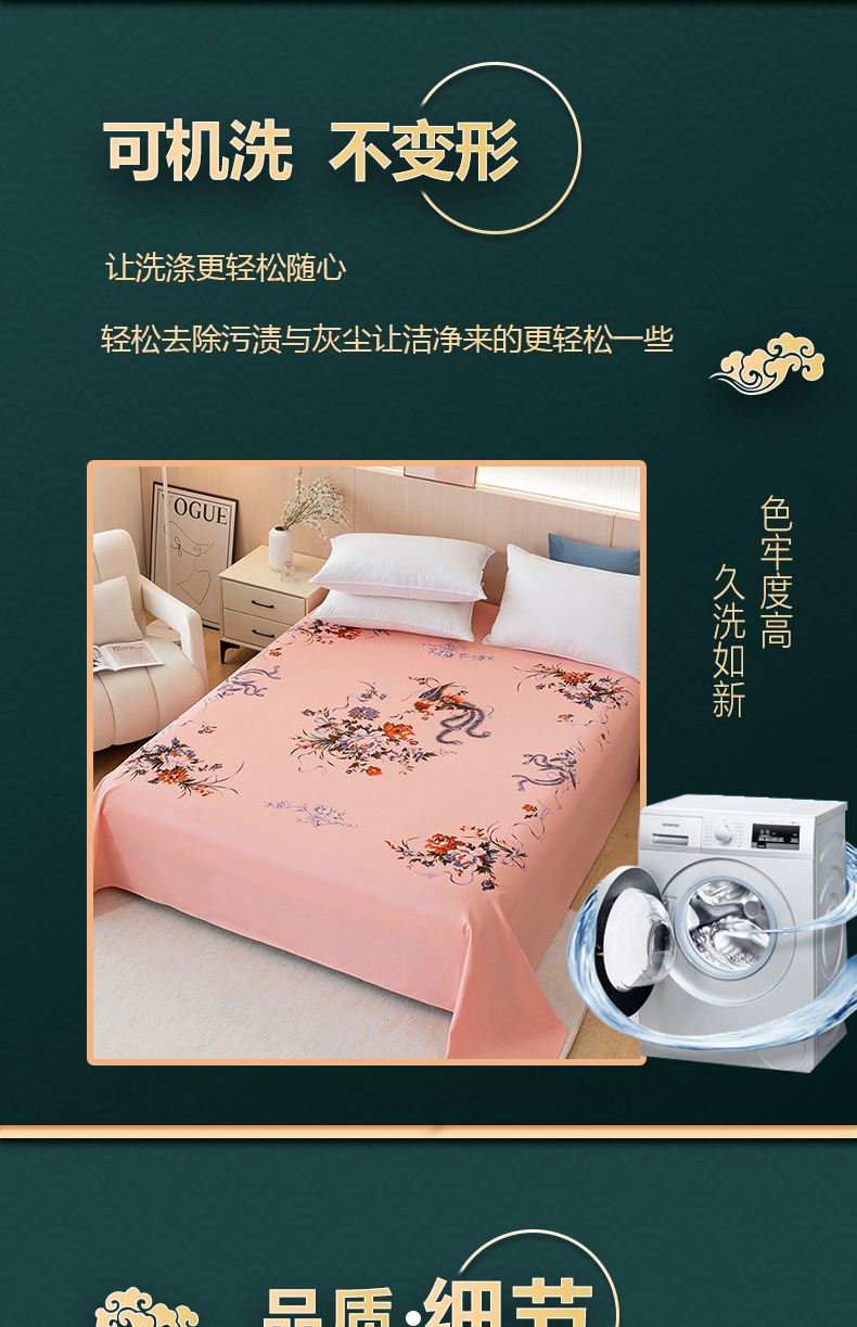 居美良品 2025新款老上海国民人字纹凤穿牡丹床单 叠拍组合图