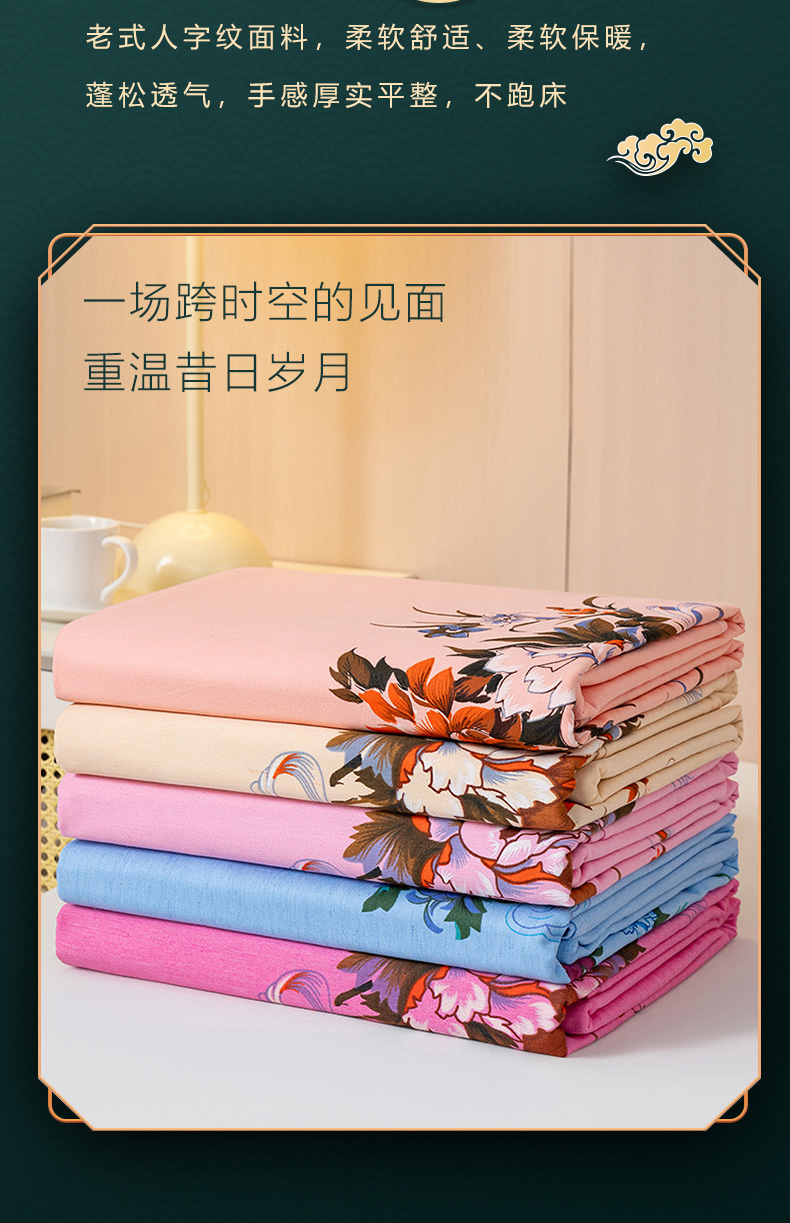 商品名称:居美良品 2025新款老上海国民人字纹凤穿牡丹床单 叠拍组合图