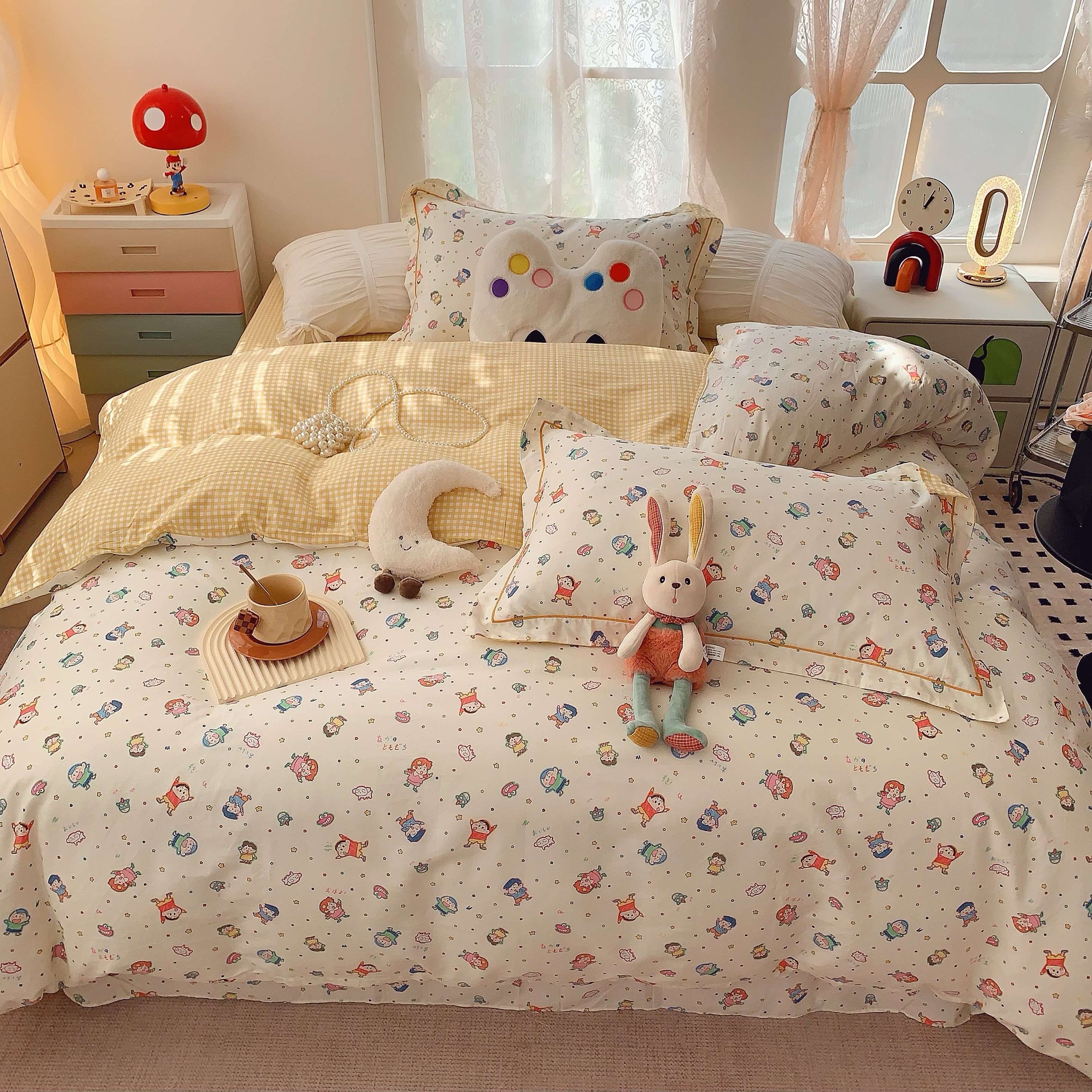 (总)莱豫家纺 2025新款小清新全棉纯棉四件套,爱心豹纹,白薇,春黛,芳华,锦绣咖,锦绣米,可爱狗狗咖,太空超人,甜橘,童年,仙本娜,小飞马,小小花园,星星人黄,星星人蓝,雅蔓
