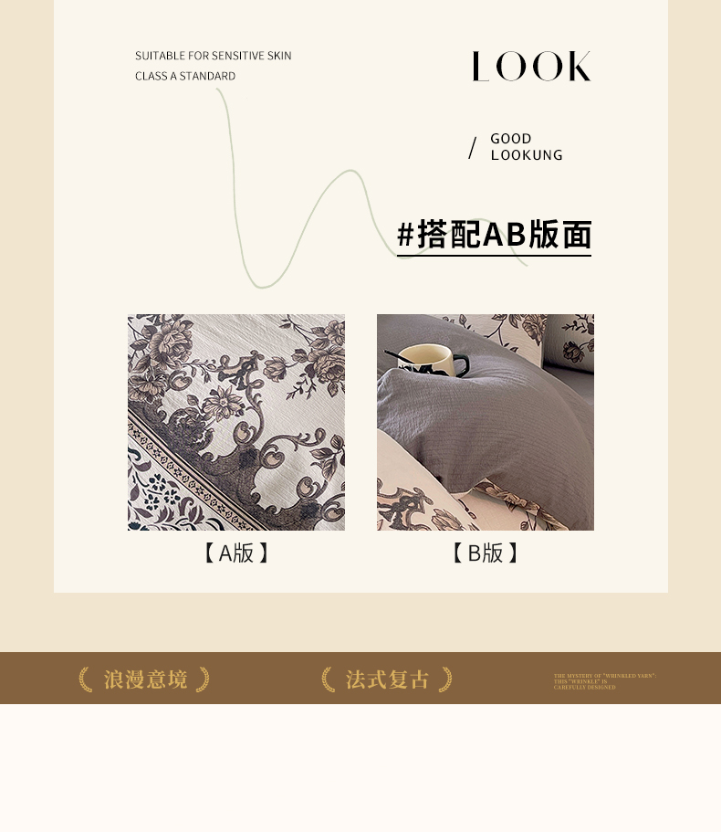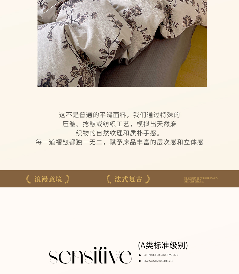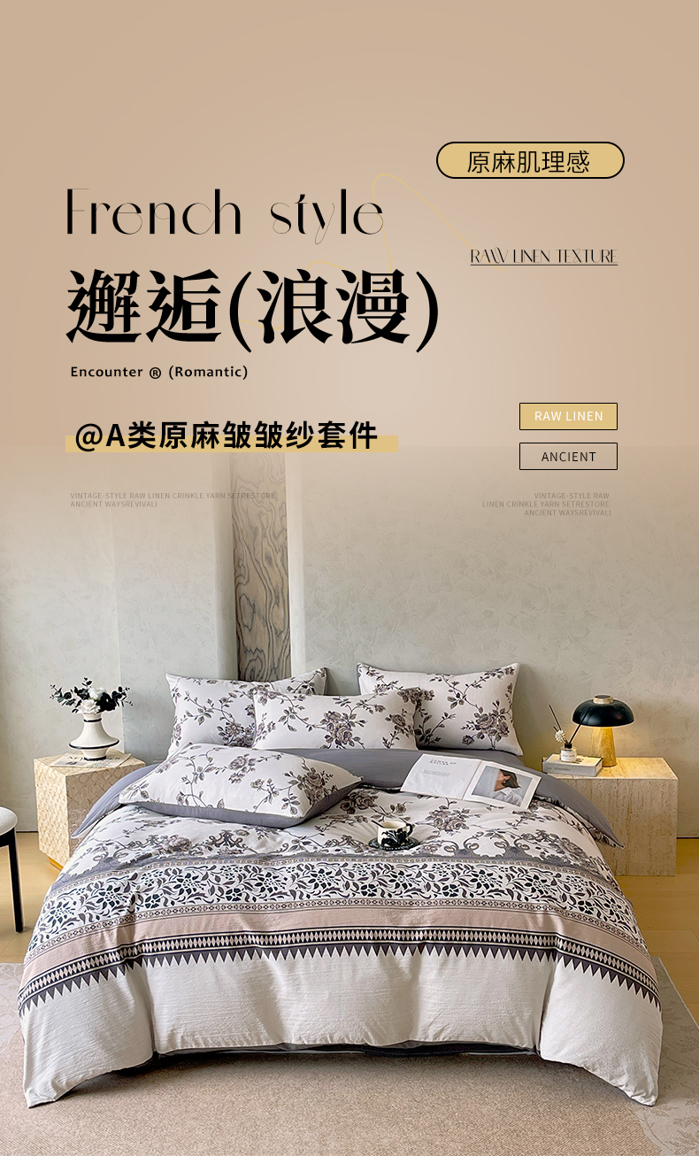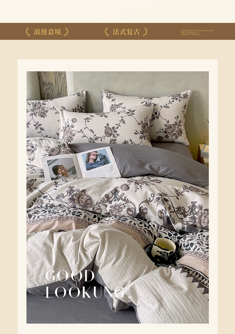 当前位置: 91家纺网 > 商品网购 > 床品套件 > 四件套 > 其它四件套 > 宝士康家纺 2025秋冬新品高克重A类原麻暗合四件套复古加厚双层纱仿亚麻套件 雅蔓