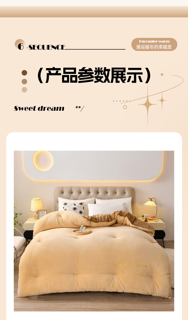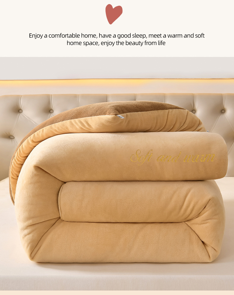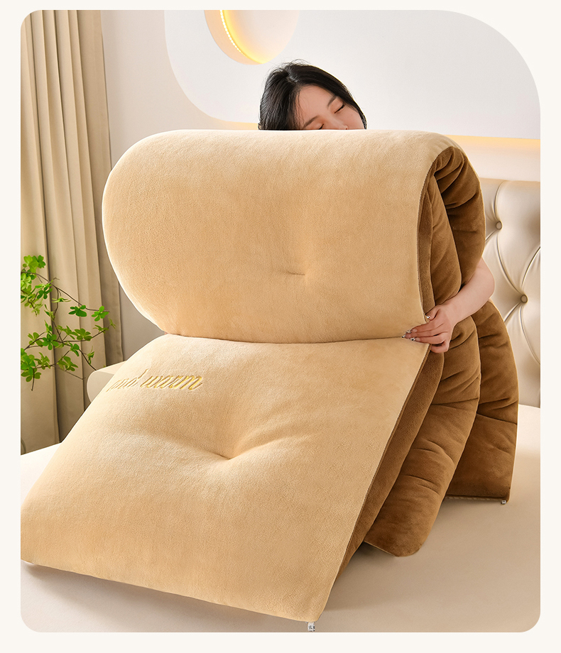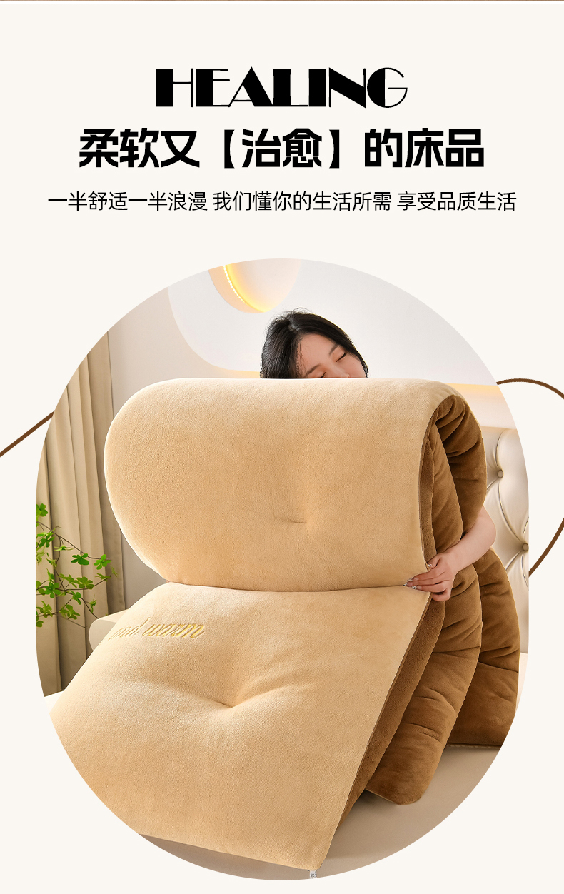 商品名称:春雨家居 2025新款双面牛奶绒刺绣冬被被子被芯 极简灰咖