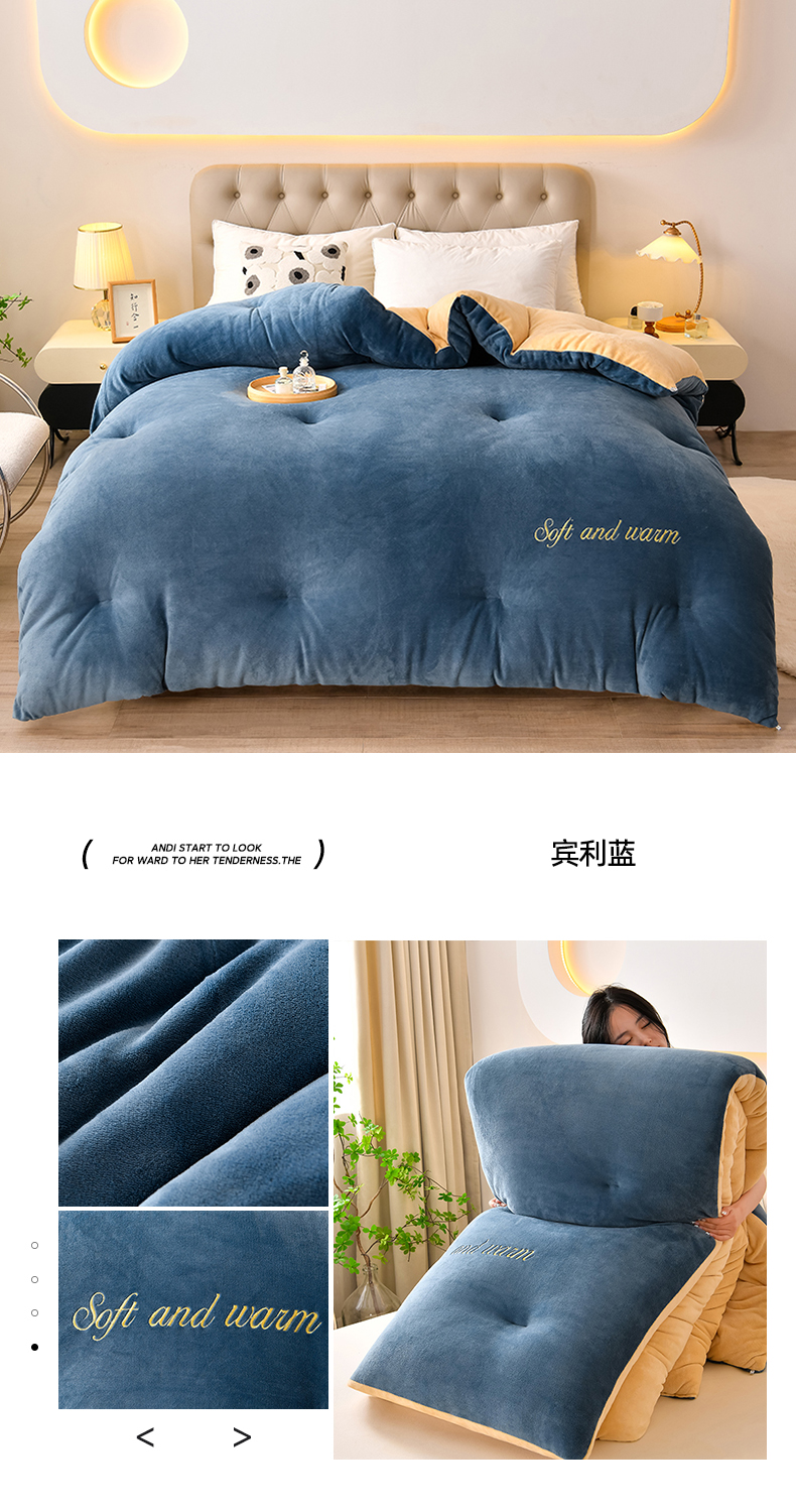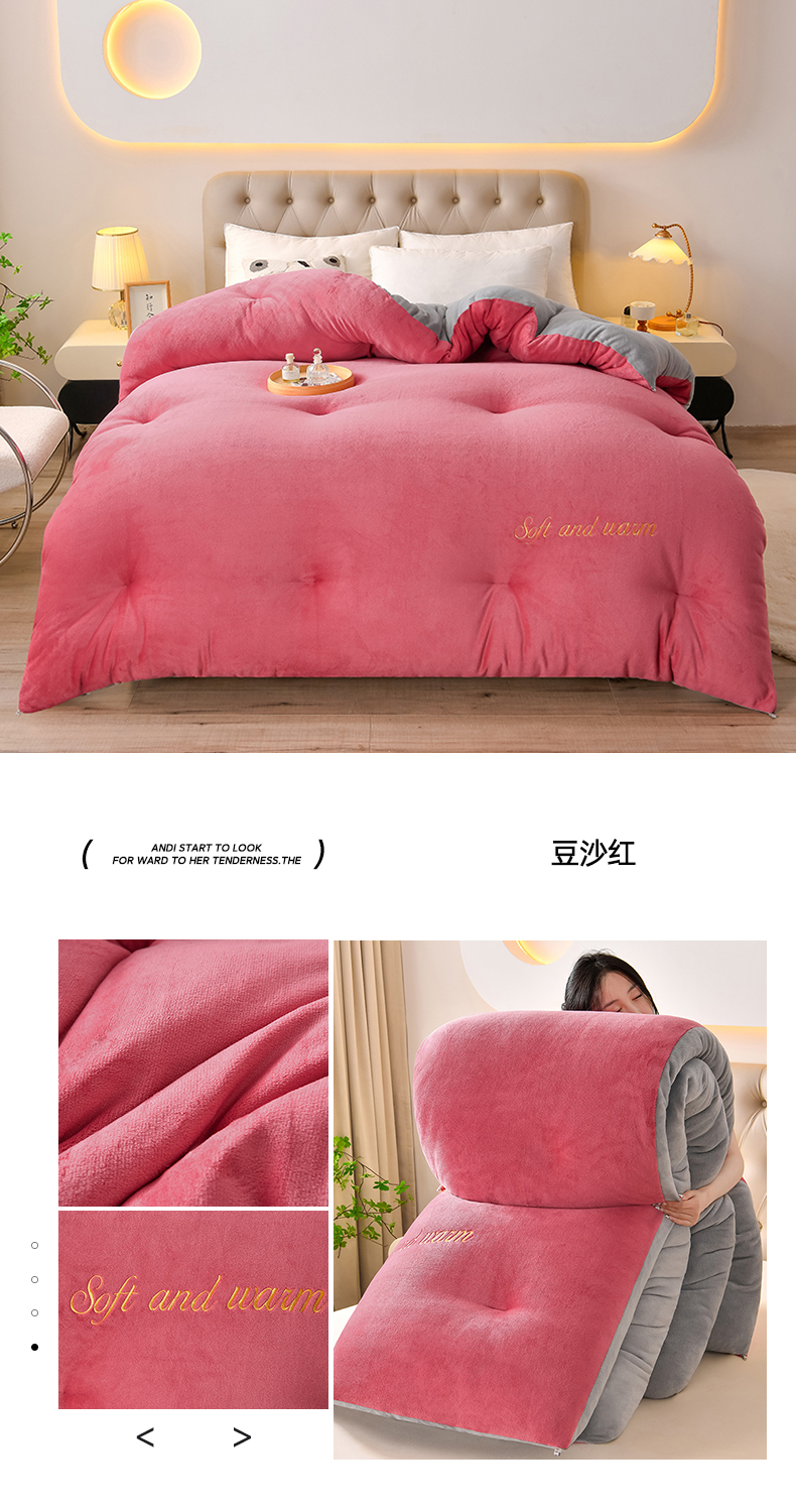 (总)春雨家居 2025新款双面牛奶绒刺绣冬被被子被芯,宾利蓝,豆沙红,时尚灰,奢华拿铁,高级咖,极简灰咖