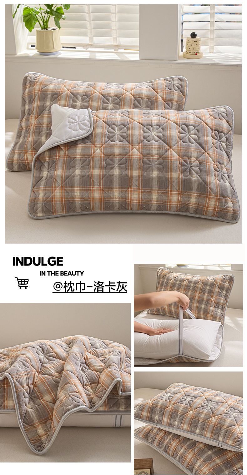 (总)芬晴家纺 2025新款全棉色织棉花枕套,本色,经典格,诺卡,清风-粉,清风-灰,清风-兰,日常