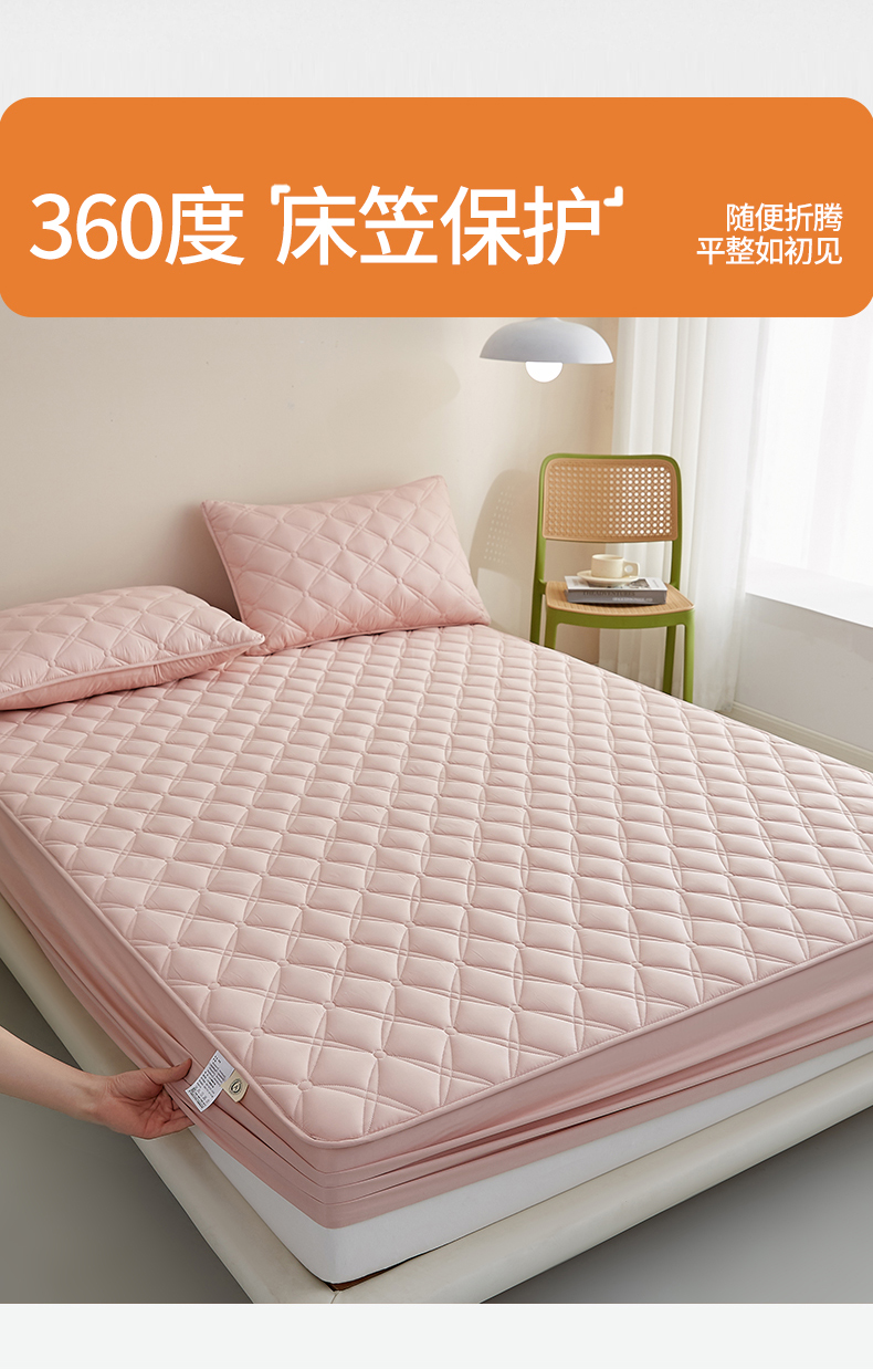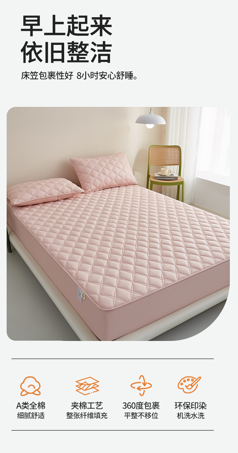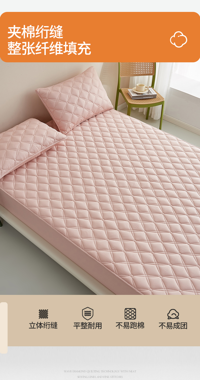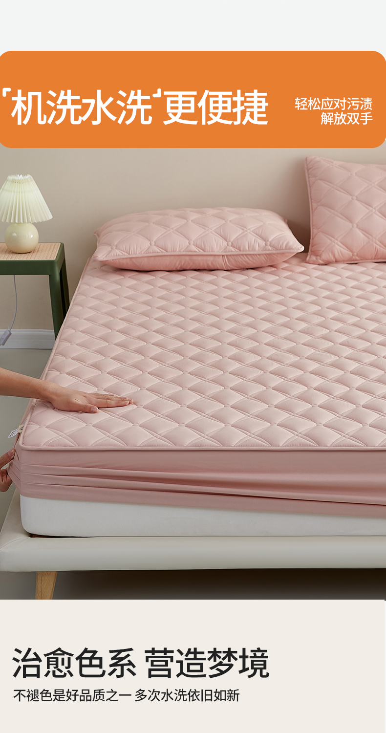 (总)卓越家纺 2025新款A类全棉夹棉床护垫,组合,水绿,浅灰,深灰,驼色,豆沙,奶白