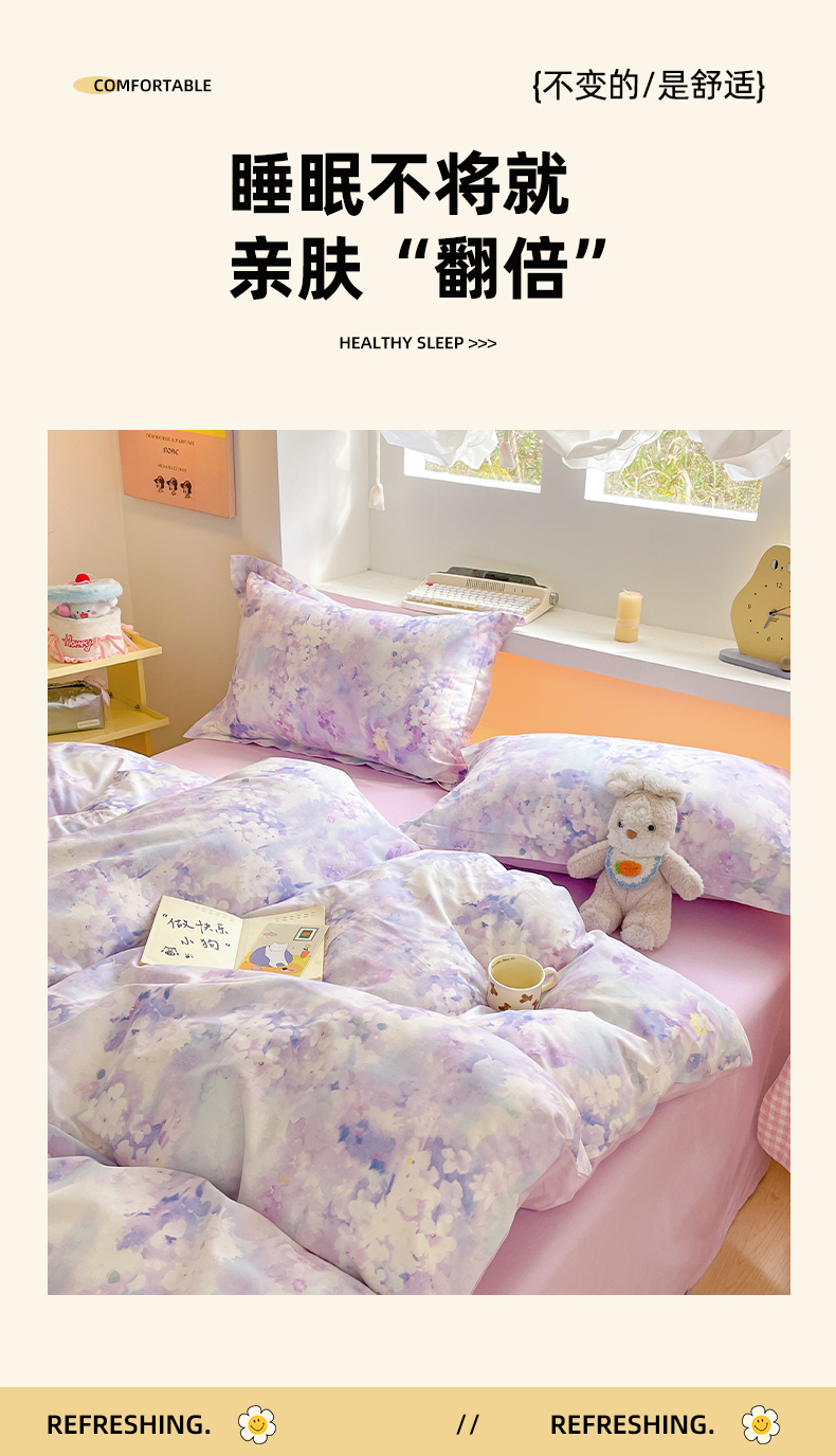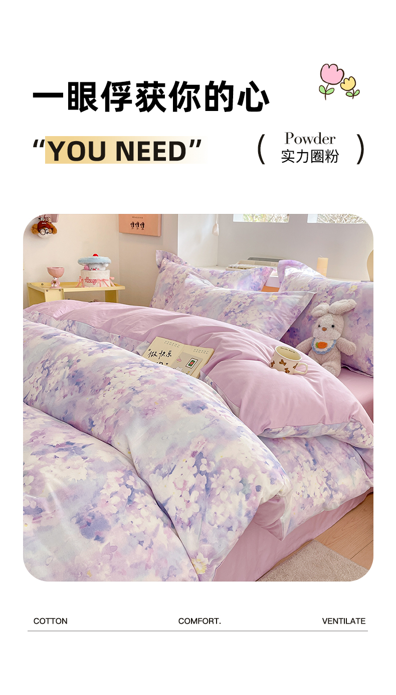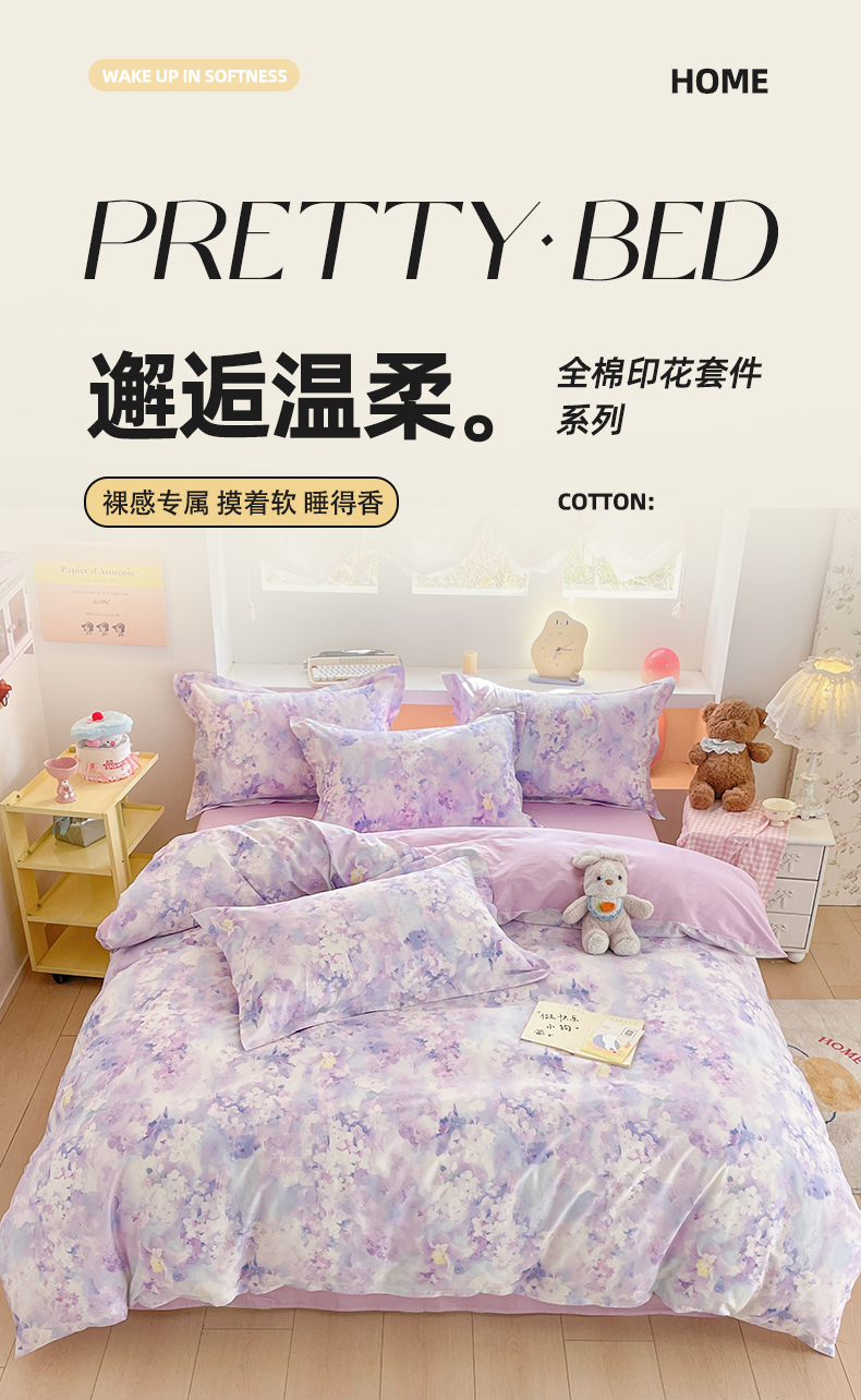 当前位置: 91家纺网 > 商品网购 > 床品套件 > 四件套 > 全棉普通四件套 > 帛美家纺 2025新款纯棉全棉印花四件套 花影朦胧
