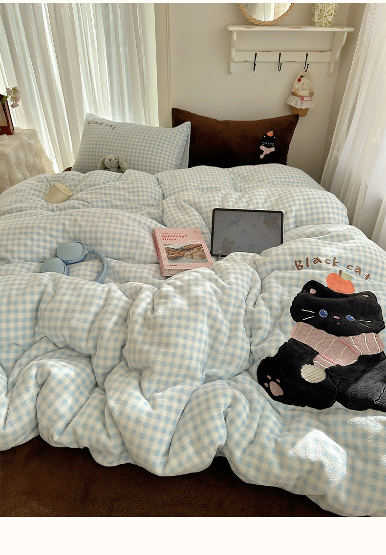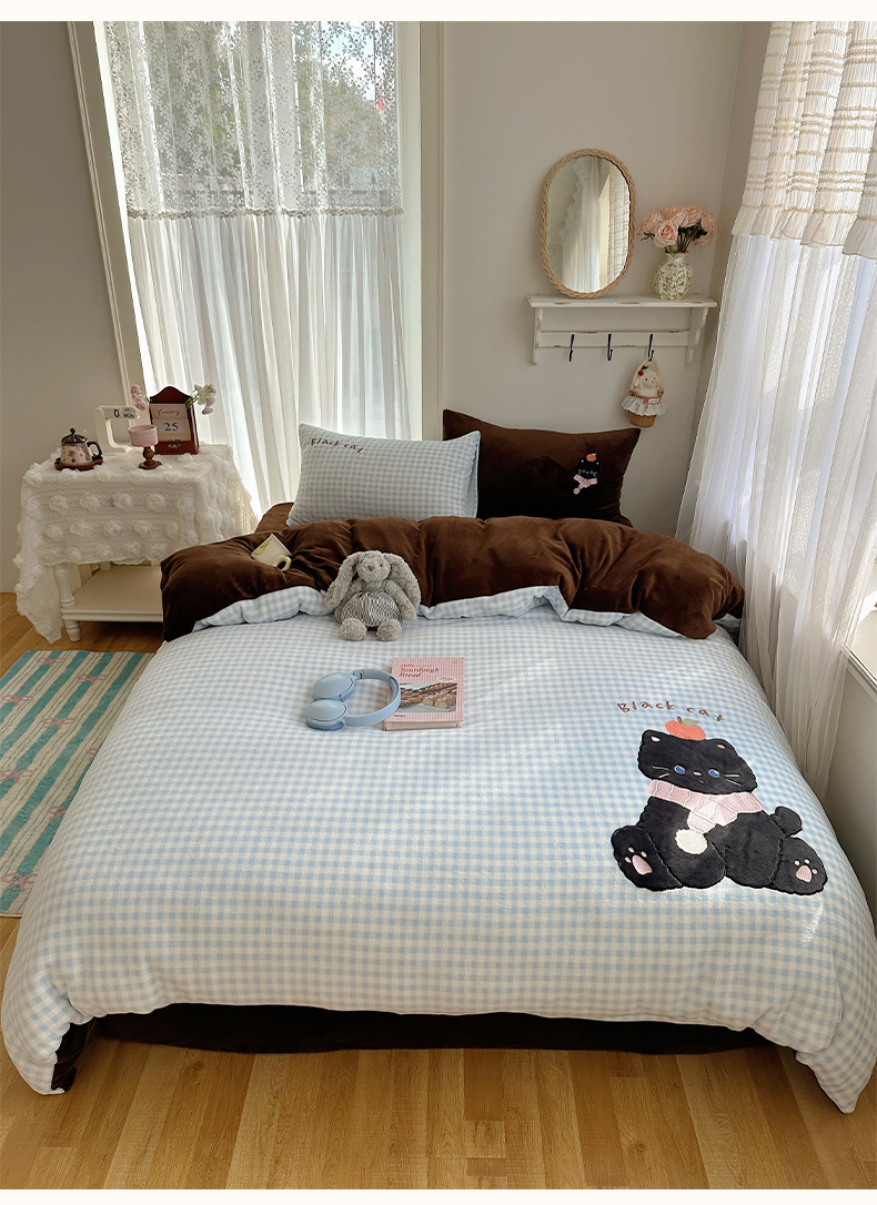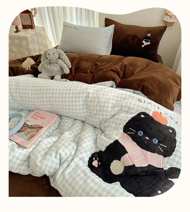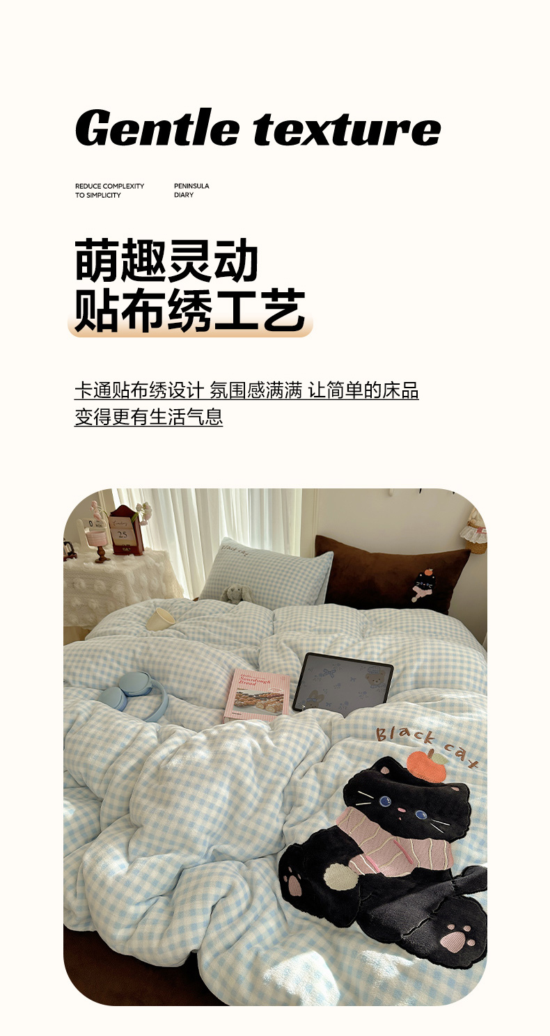 当前位置: 91家纺网 > 商品网购 > 床品套件 > 四件套 > 牛奶绒四件套 > 韩都家居 2025新款卡通贴布绣系列加厚牛奶绒四件套 冬日猫咪